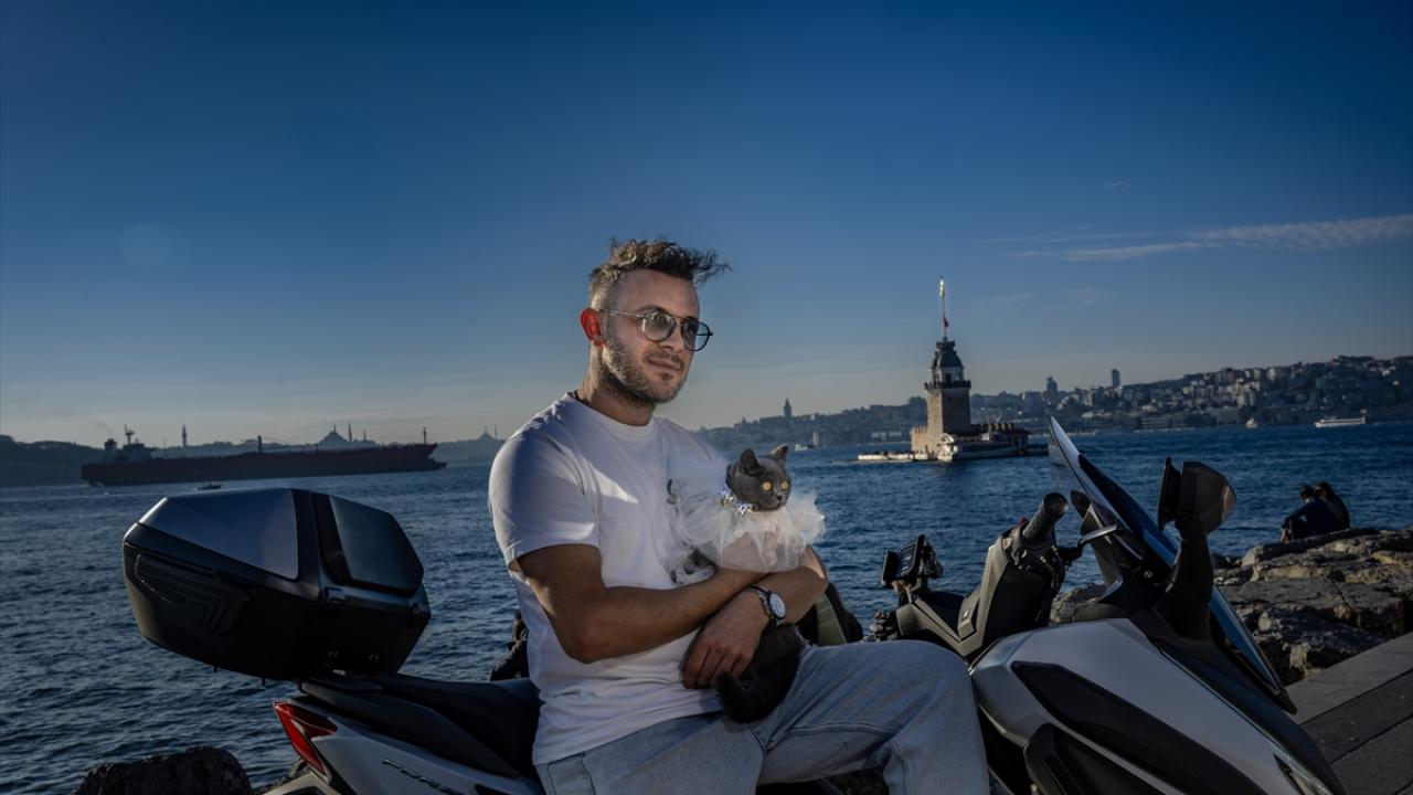Motosikletli kedi “Gofret” İstanbul sokaklarında ilgi odağı oldu