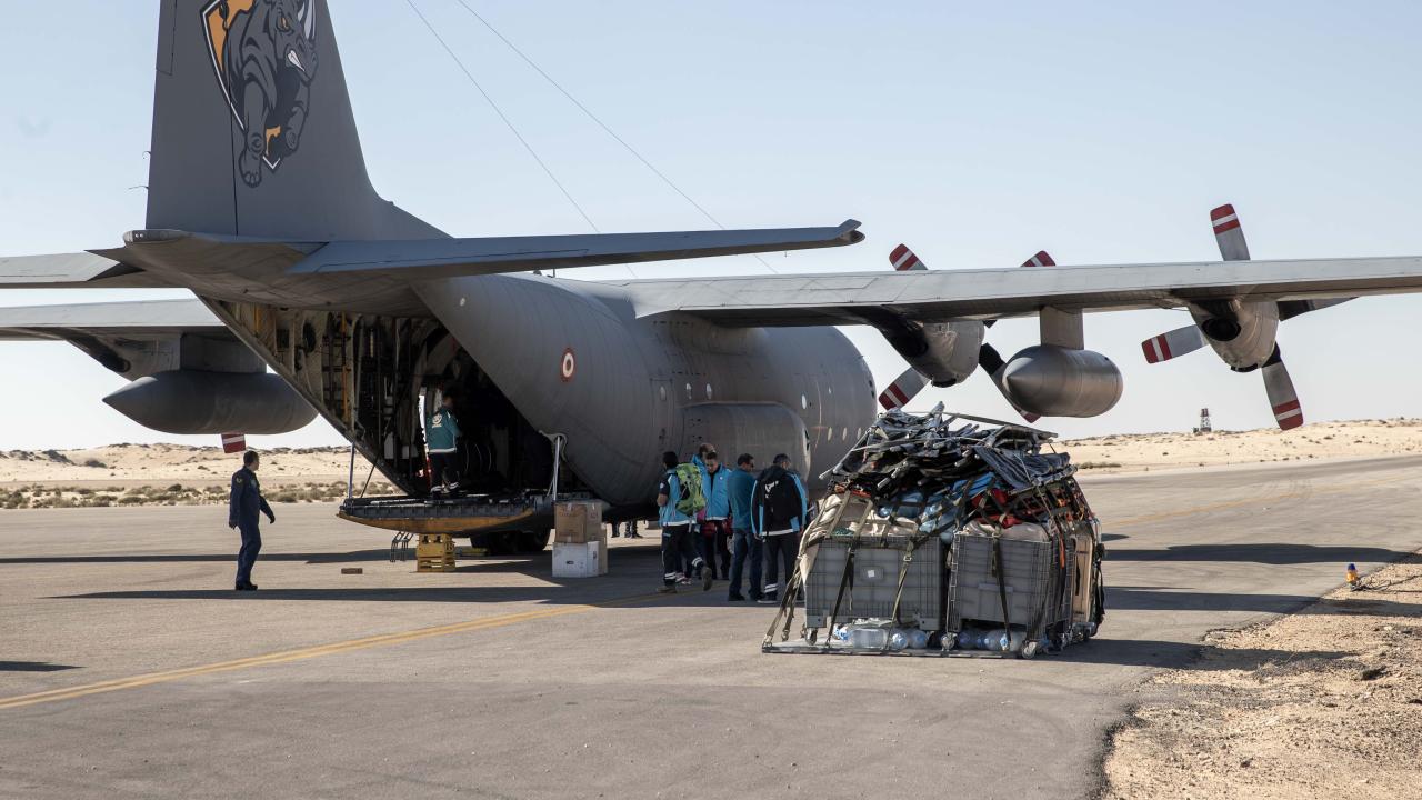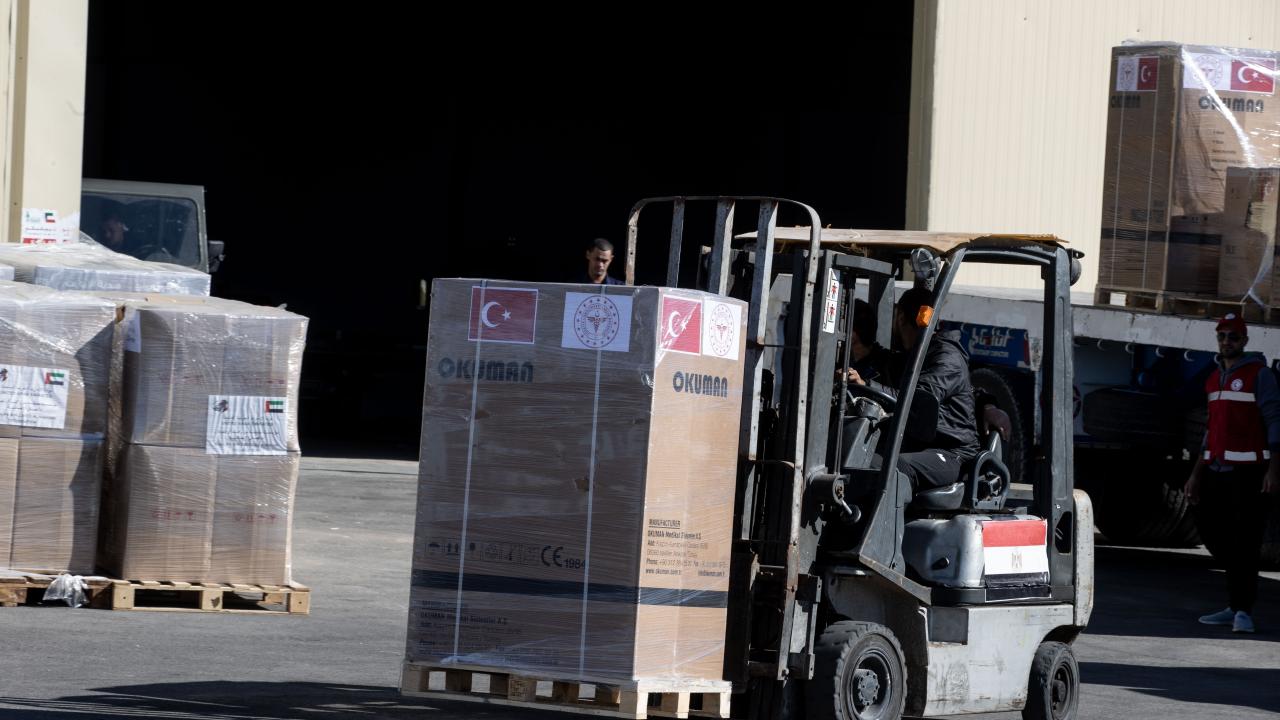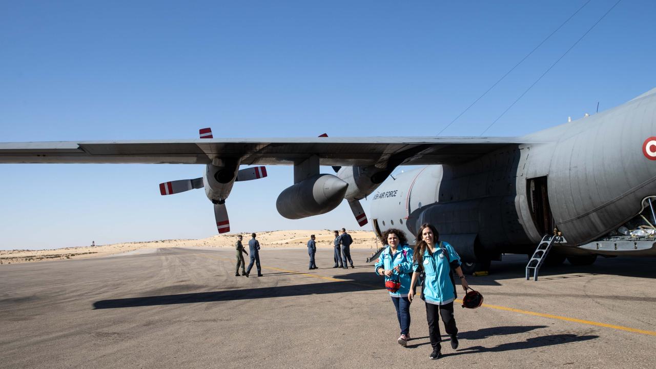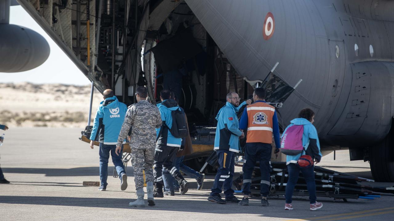 Türkiye'den Gazze'ye ilaç ve tıbbi malzeme taşıyan, içerisinde 9 uzman sağlık çalışanının da bulunduğu askeri uçak, Mısır'ın El-Ariş Havalimanı'na indi.