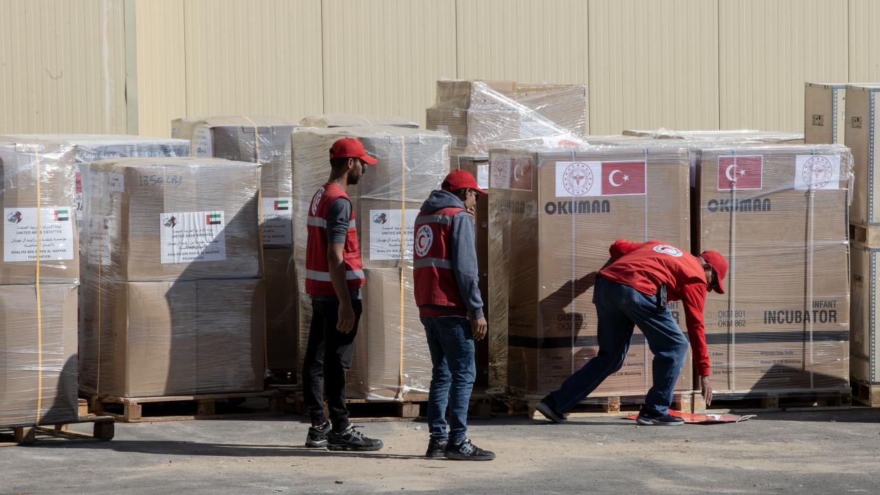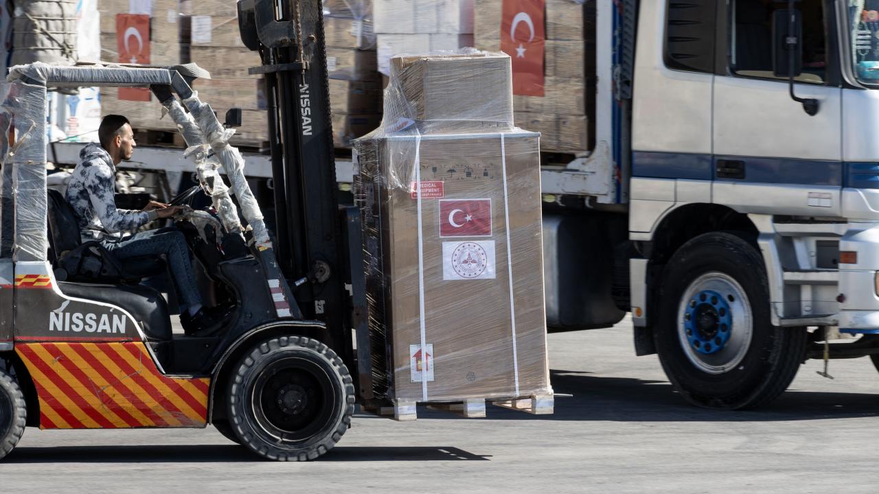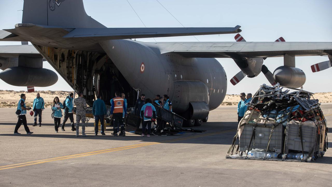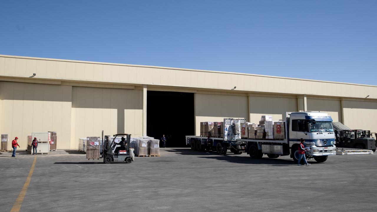 Türkiye'den Gazze'ye ilaç ve tıbbi malzeme taşıyan, içerisinde 9 uzman sağlık çalışanının da bulunduğu askeri uçak, Mısır'ın El-Ariş Havalimanı'na indi.