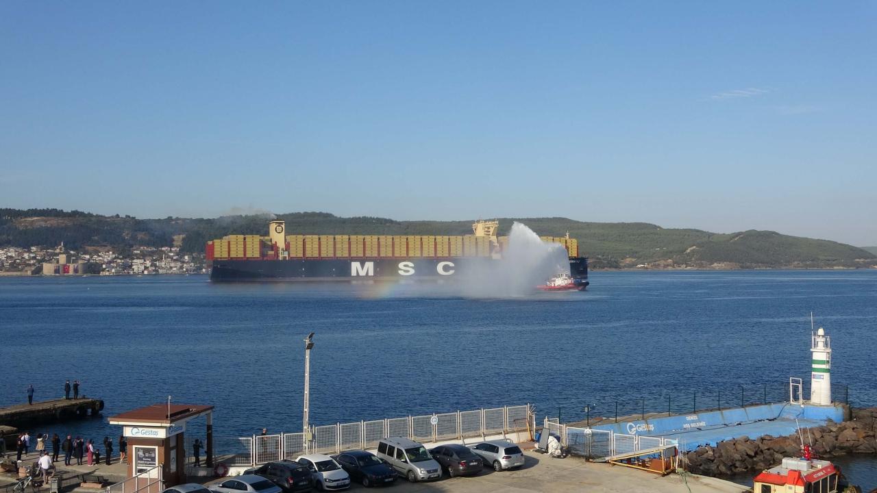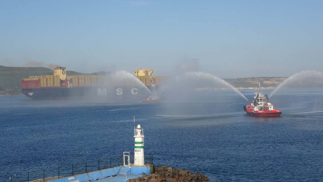 Dünyanın en büyük konteyner gemilerinden olan ve Cumhuriyet'in 100’üncü yılı anısına ‘MSC Türkiye’ adıyla denize indirilen gemi, Çanakkale Boğazı’ndan geçerek Tekirdağ Limanı’na doğru yol aldı.