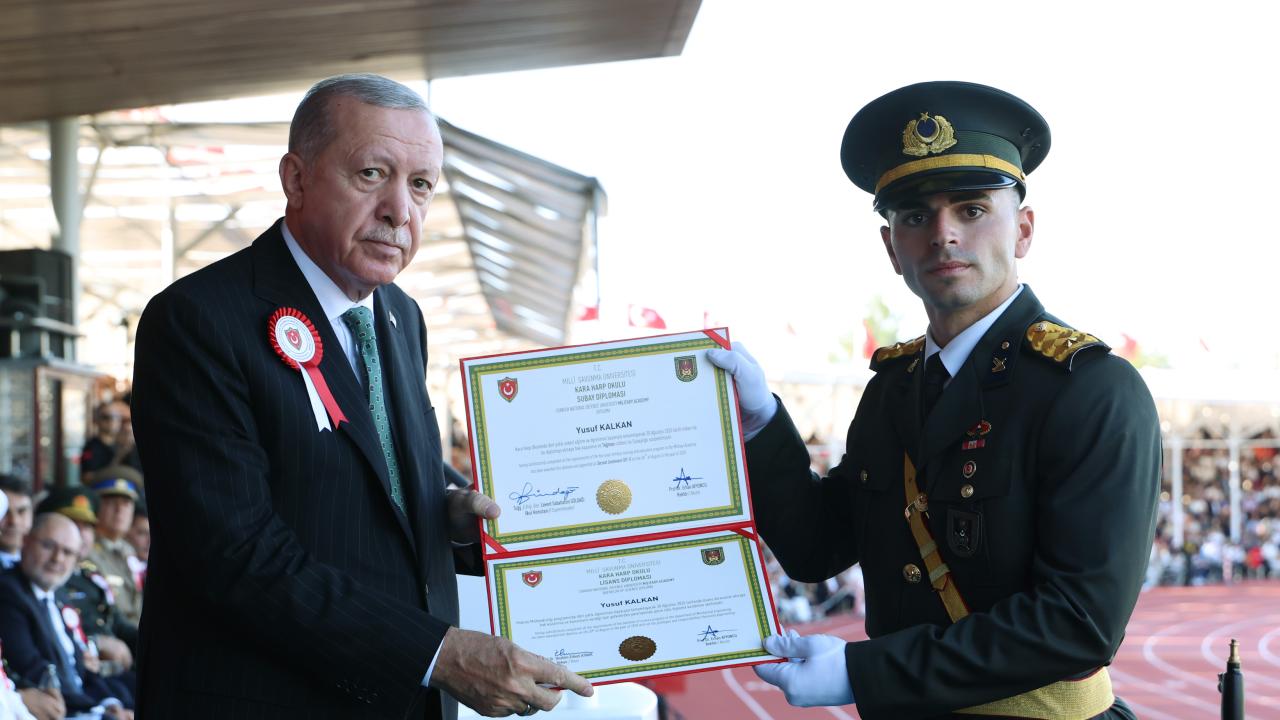 Cumhurbaşkanı Recep Tayyip Erdoğan, Kara Harp Okulu'nda Milli Savunma Üniversitesi (MSÜ) Harp Okulları Diploma Alma ve Sancak Devir Teslim Töreni'ne katıldı.
