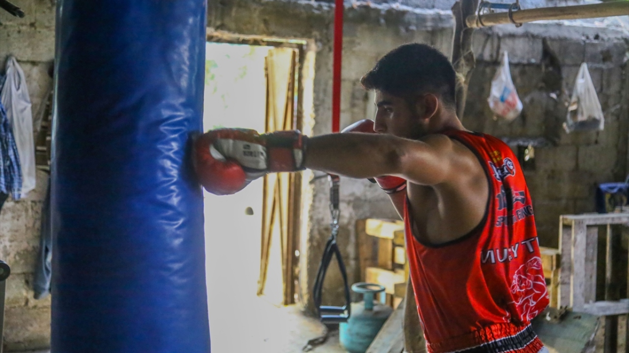 Burada adeta küçük bir "salon" oluşturan Mehmet Ali, 2021 yılında Tayland`da düzenlenecek Muaythai Dünya Şampiyonası`nda en büyük hayali olan dünya şampiyonluğuna ulaşmak için antrenmanlara başladı.