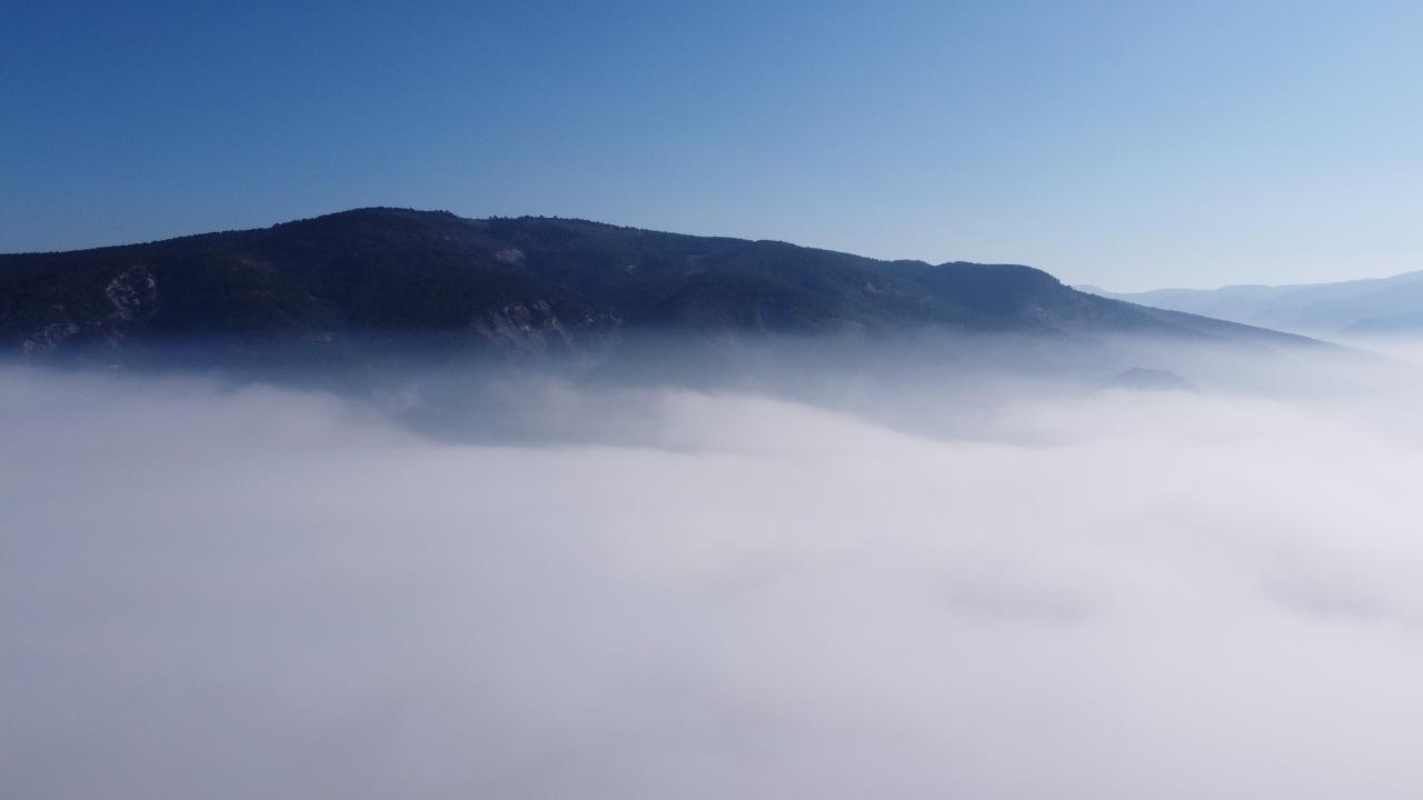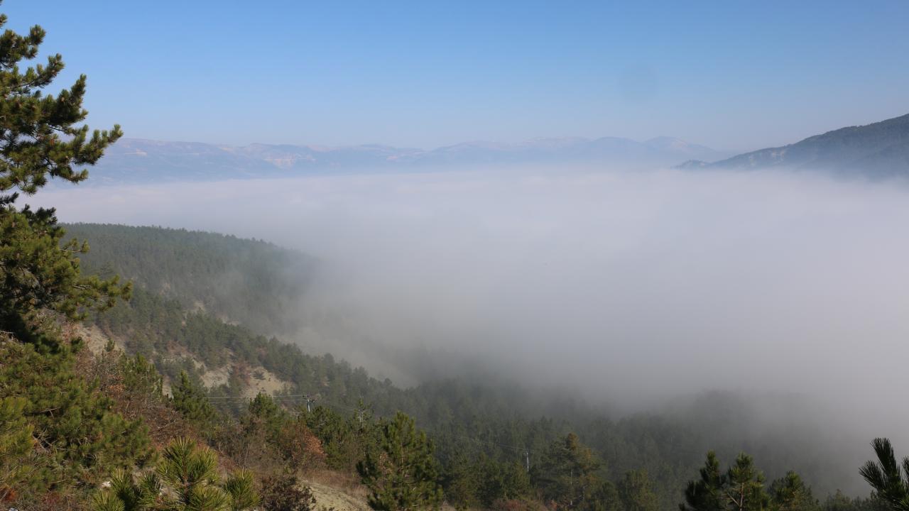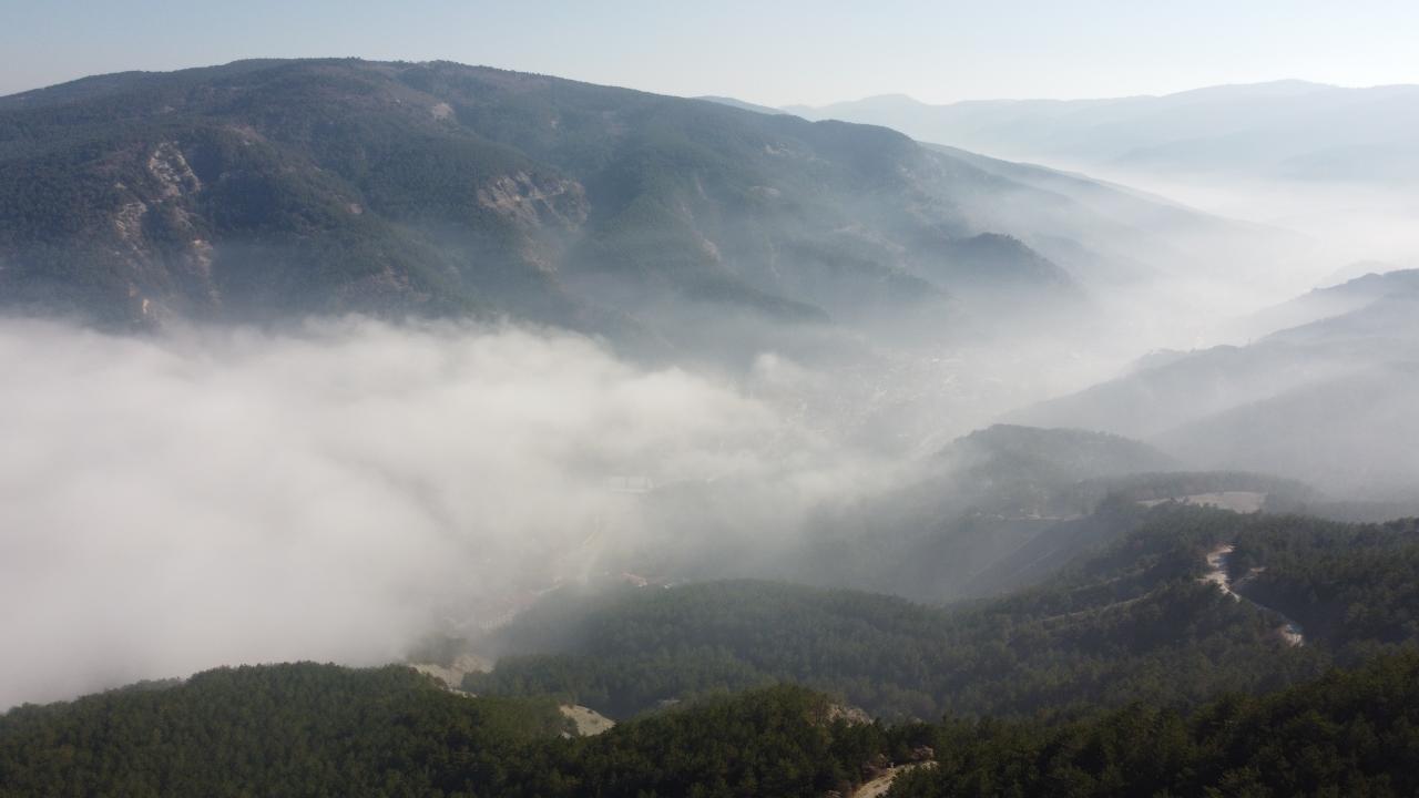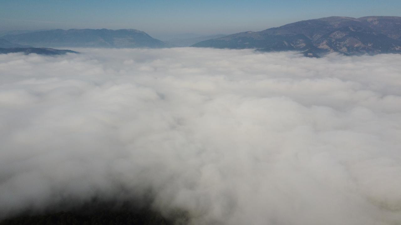 Abant Dağları'nın eteklerinde yer alan Mudurnu Ovası'ndaki sis dron ile görüntülendi.