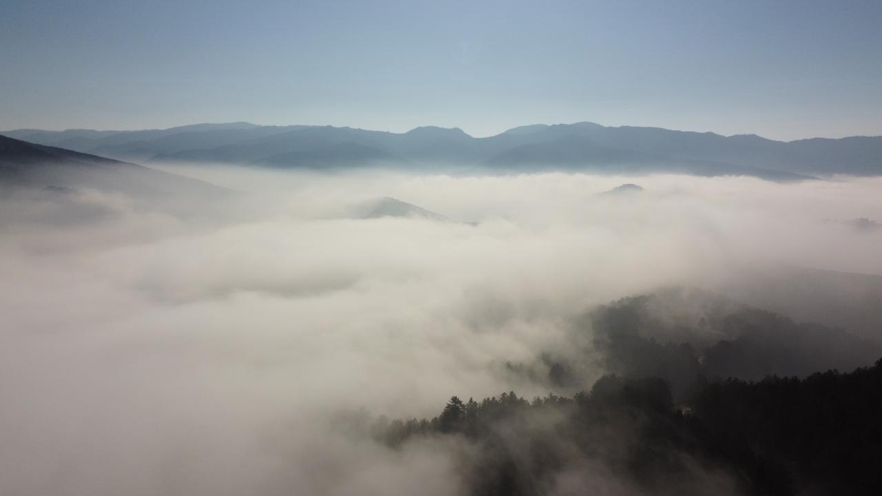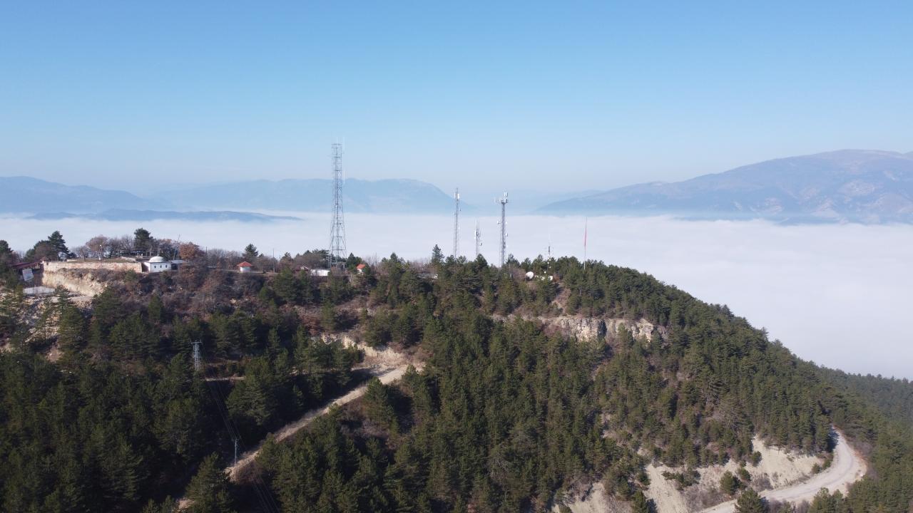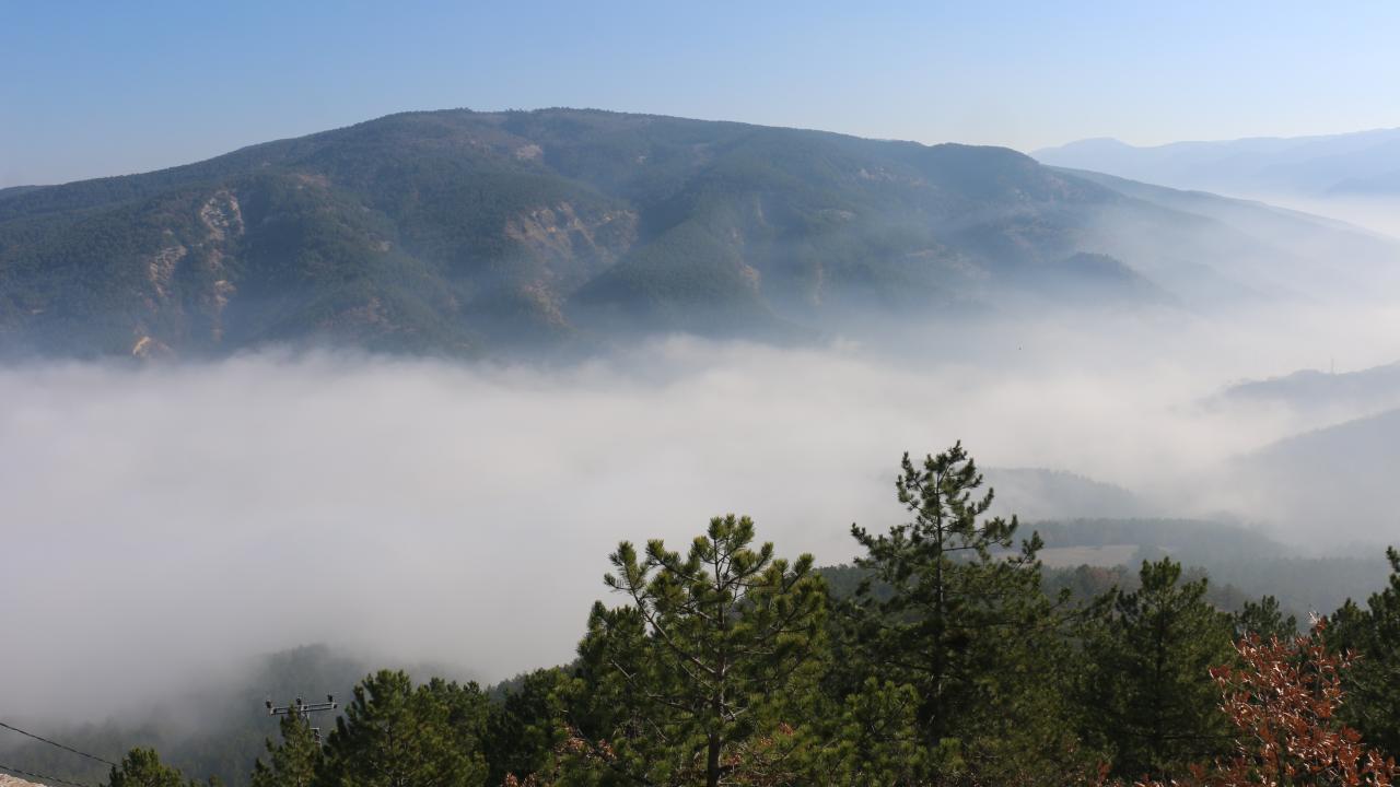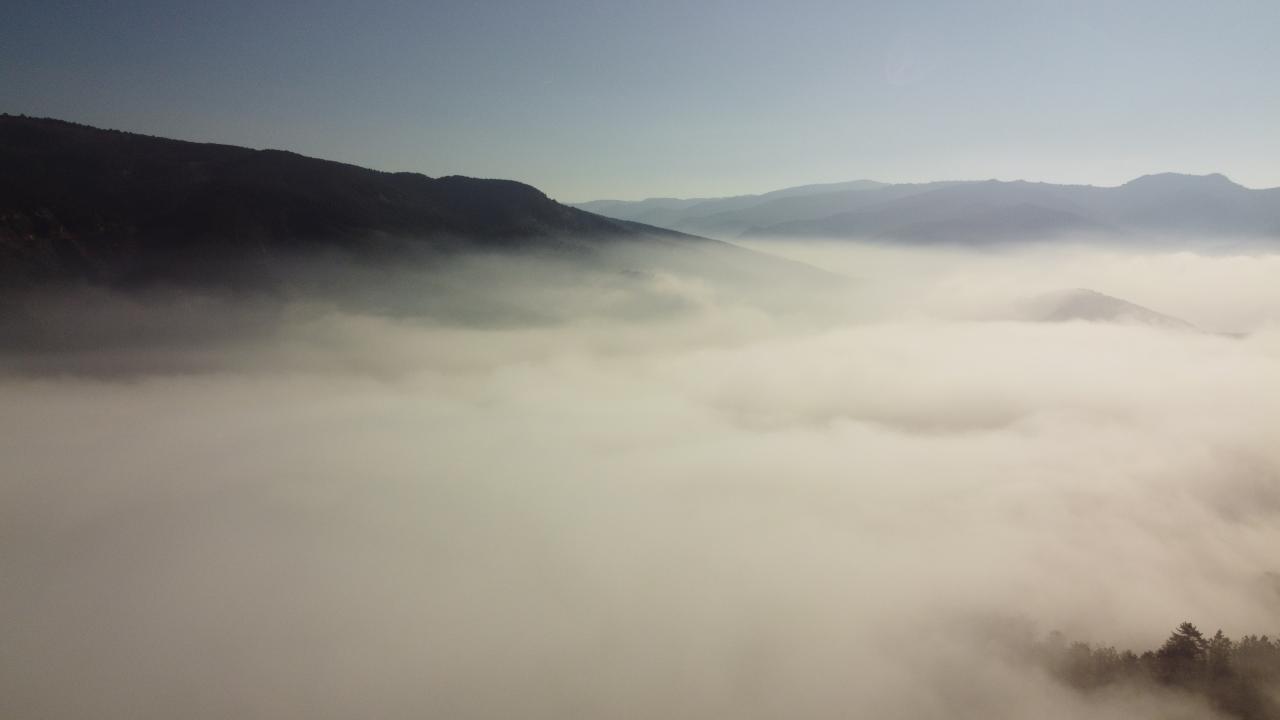 Abant Dağları'nın eteklerinde yer alan Mudurnu Ovası'ndaki sis dron ile görüntülendi.