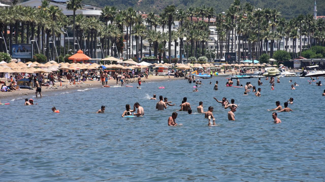 Havanın 36, deniz suyu sıcaklığının 27 derece ölçüldüğü Muğla sahillerinde tatilciler, deniz, güneş ve kumun keyfini çıkardı.