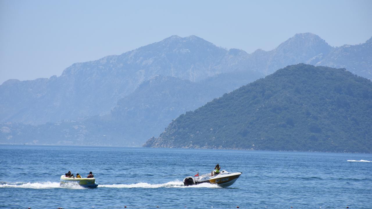 İlçe merkezinde adrenalin tutkunu turistler, su sporları istasyonlarında başta jet ski ve deniz paraşütü olmak üzere çeşitli aktivitelerle eğlenceli zaman geçirdi.