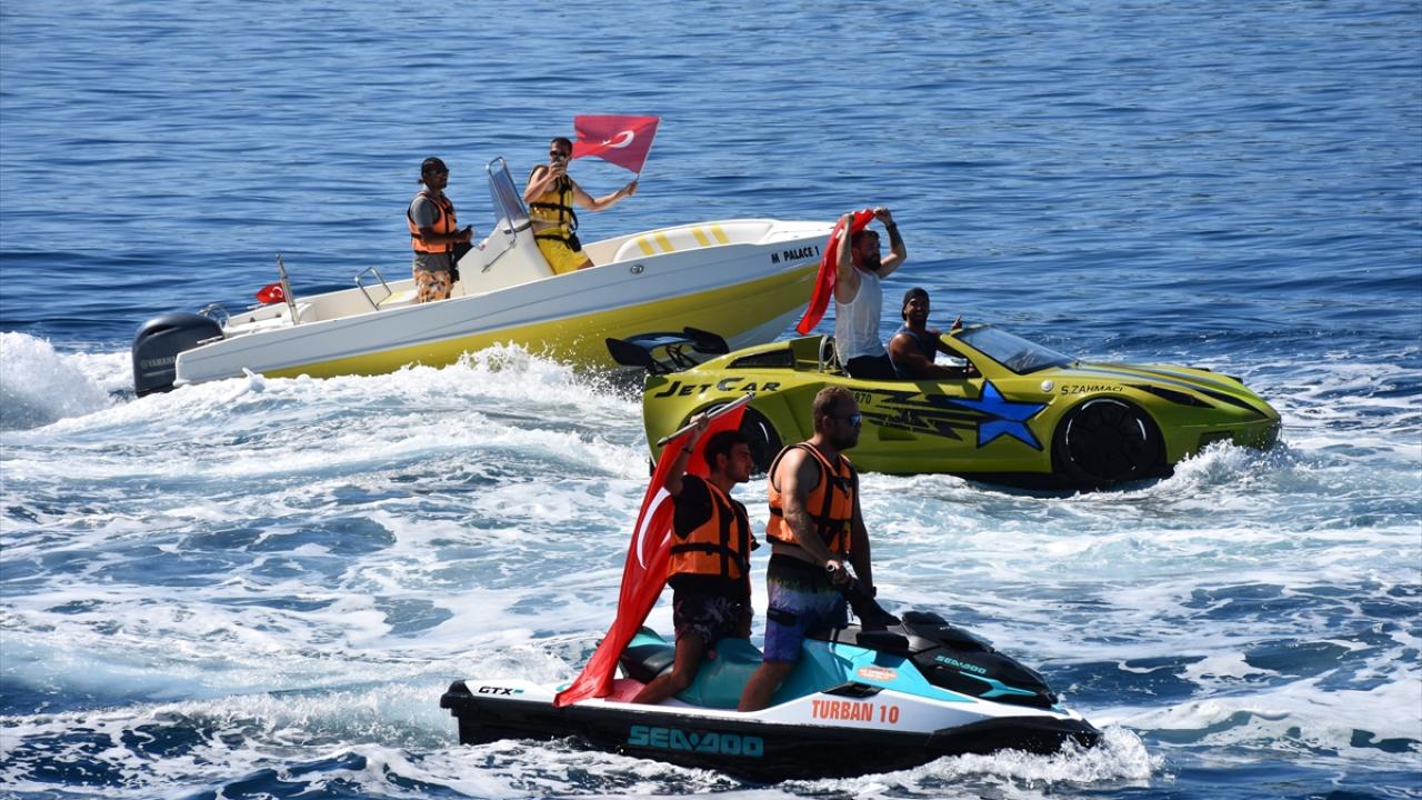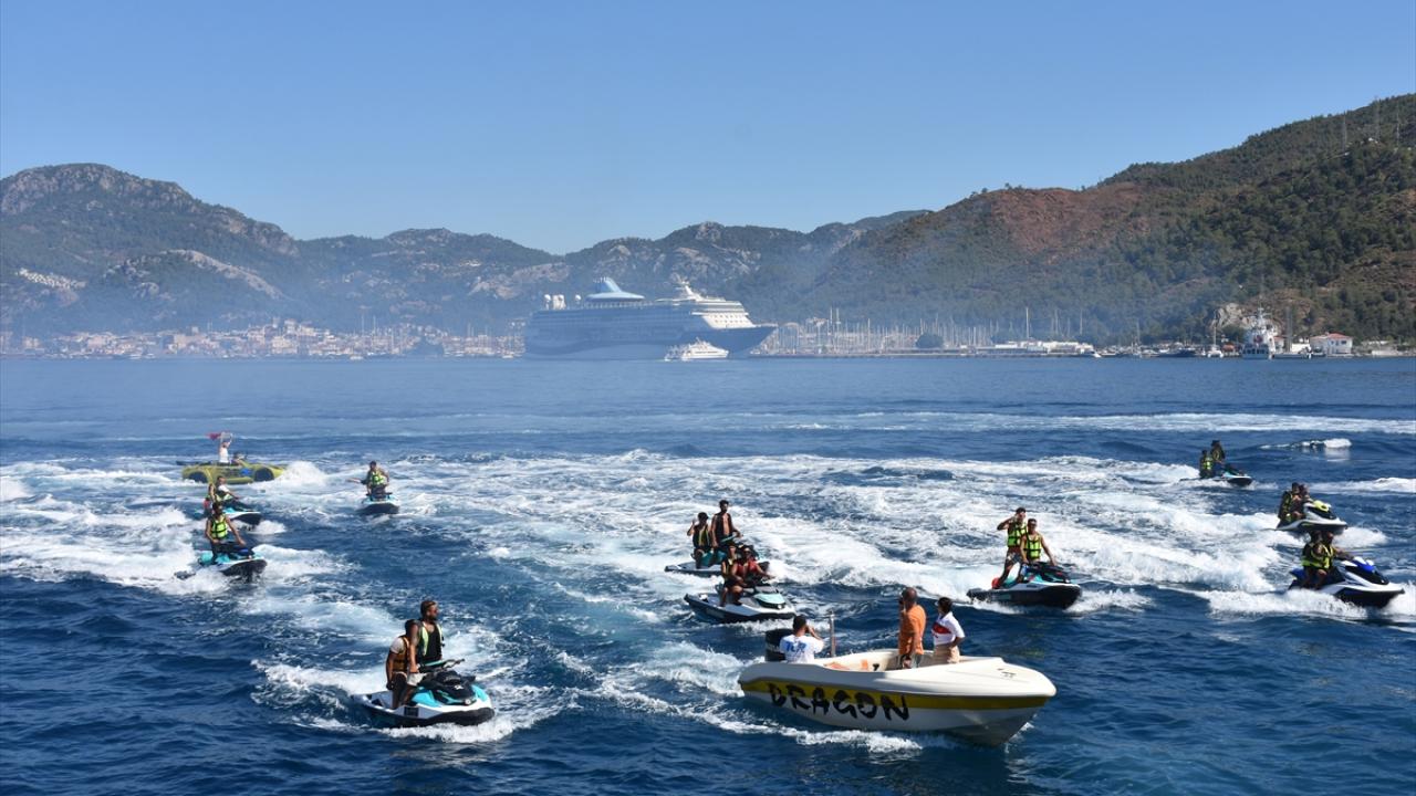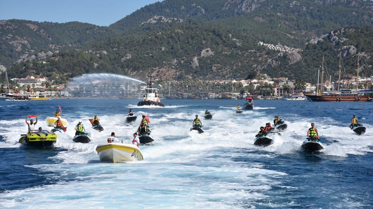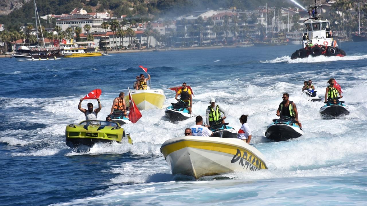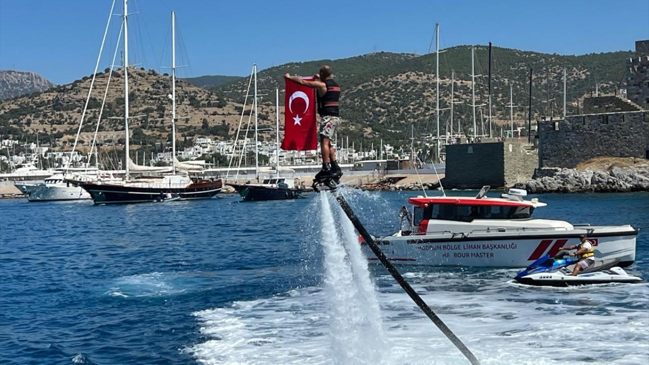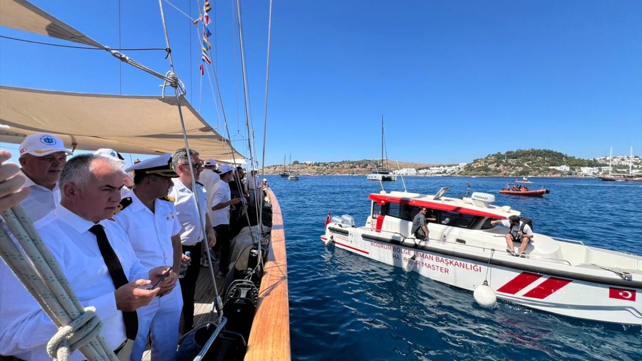 Etkinlik, Kıyı Emniyeti Genel Müdürlüğü Tahlisiye Kıyem 6 botu ve Bodrum Yolcu Limanı`na ait römorkörün su püskürtme gösterisiyle devam etti.