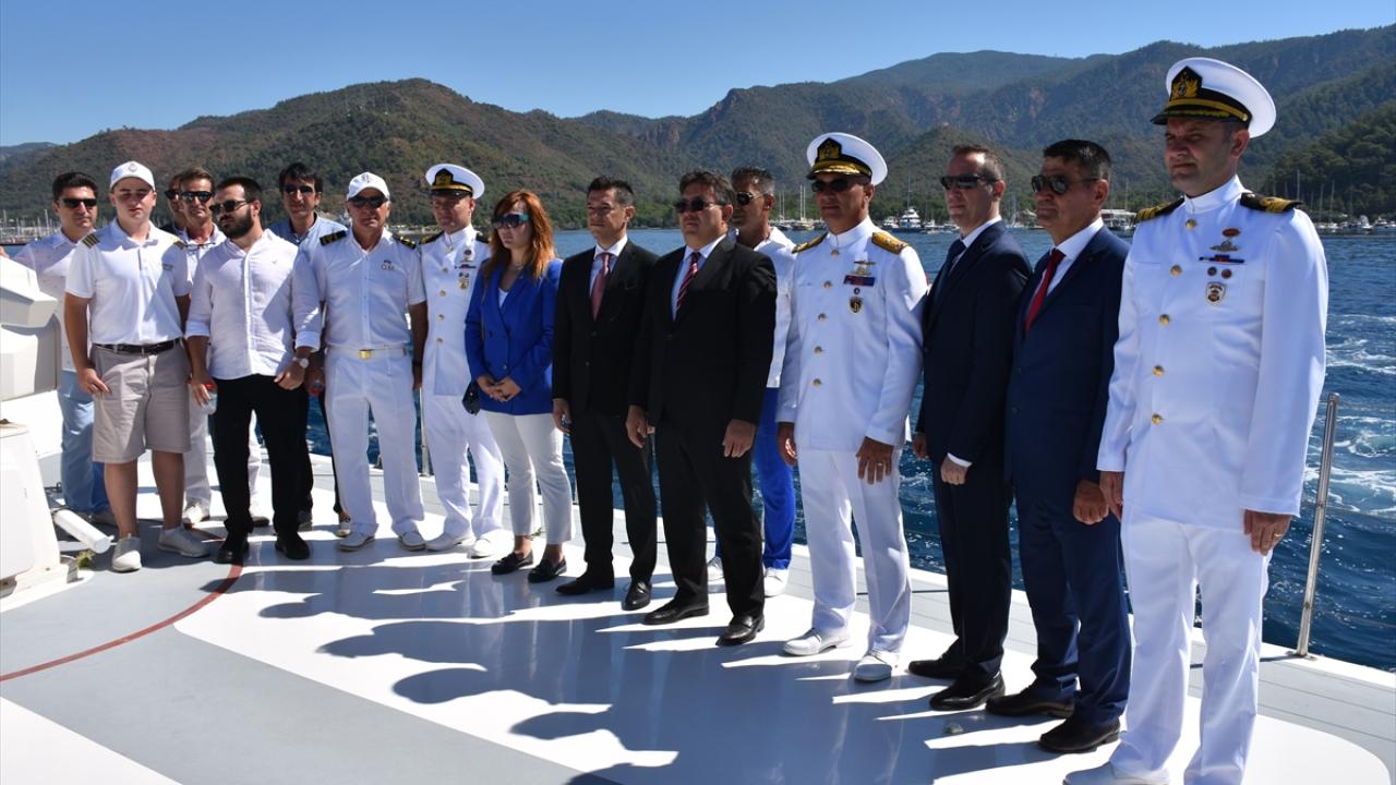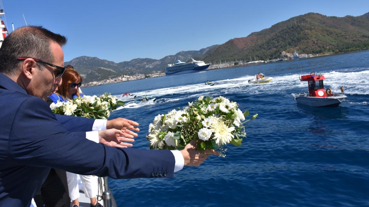 Bodrum Belediye Meydanı`ndaki törenden sonra Bodrum Sahil Güvenlik Komutanlığının botu ve STS Bodrum Okul Gemisi ile limandan denize açılan ilçe protokolü, Ulu Önder Mustafa Kemal Atatürk ve şehit denizciler anısına denize çelenk bıraktı.