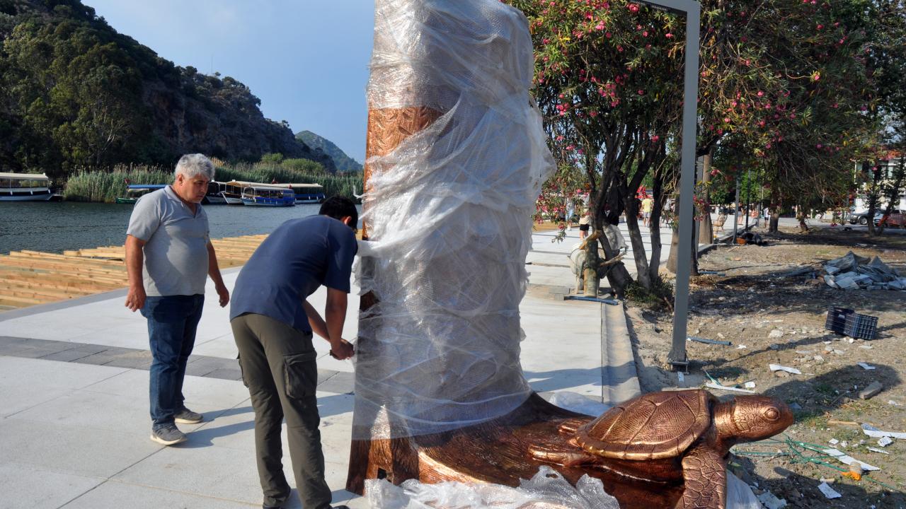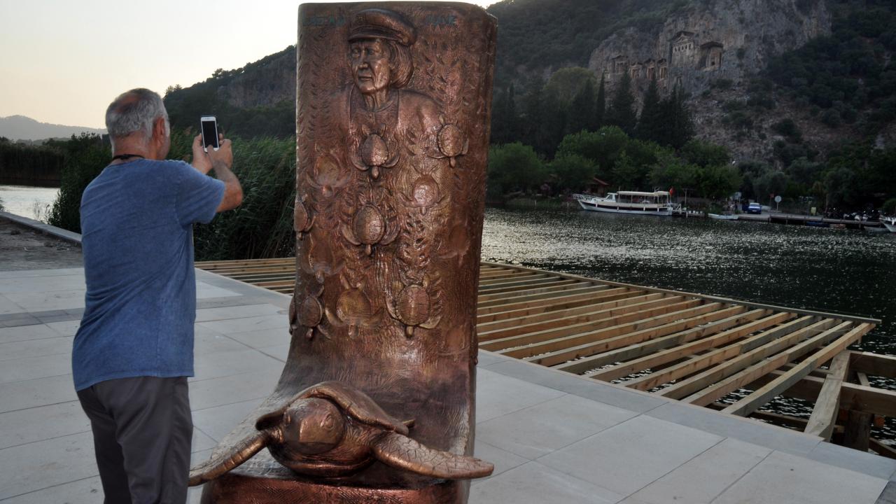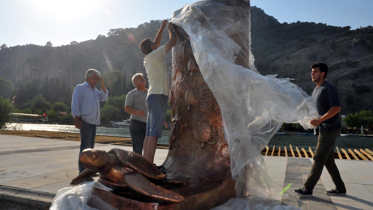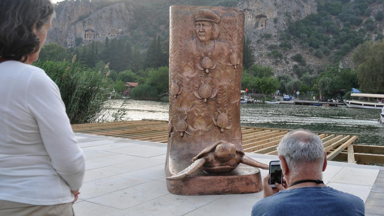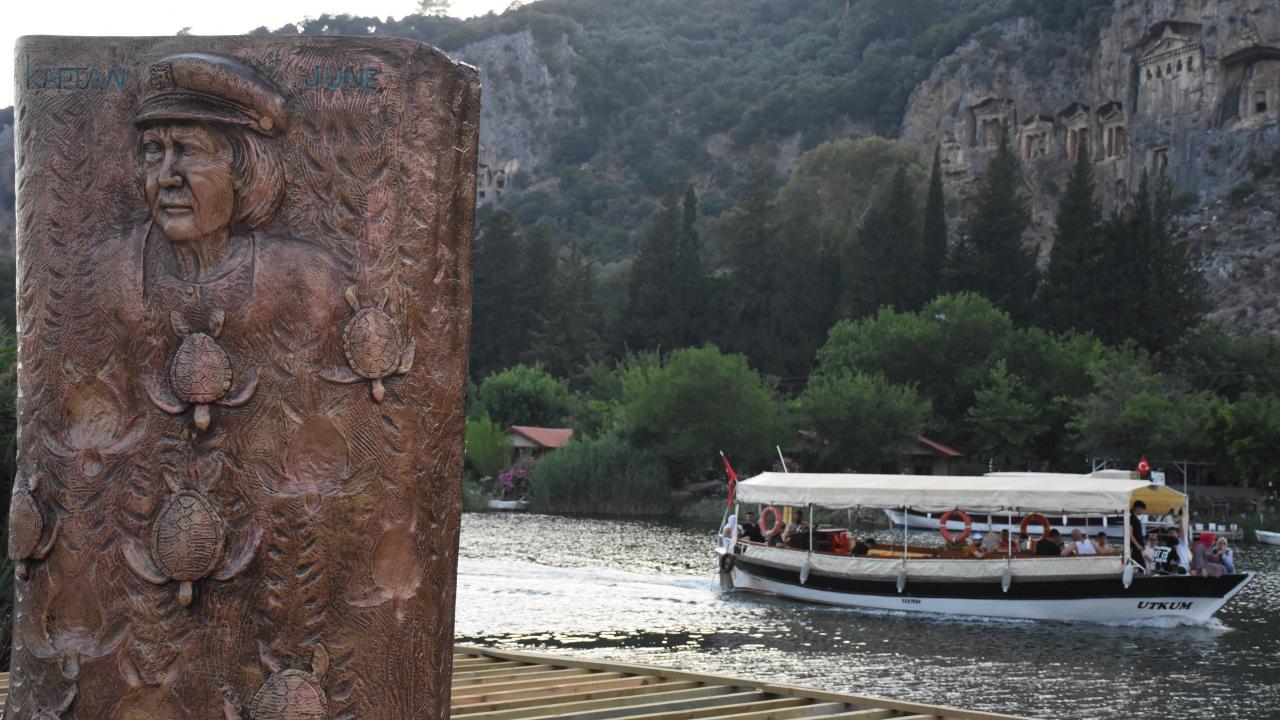 Heykeltıraş İnayet Türkoğlu tarafından yapılan anıt, Çevre, Şehircilik ve İklim Değişikliği İl Müdürü Ömür Özdil, Ortaca Belediye Başkanı Alim Uzundemir ile Kaptan June Vakfı Başkanı Hatice Dilek Yönden`in katılımıyla Dalyan Mahallesi`ndeki hazırlanan yerine konuldu.