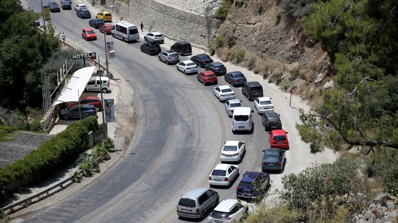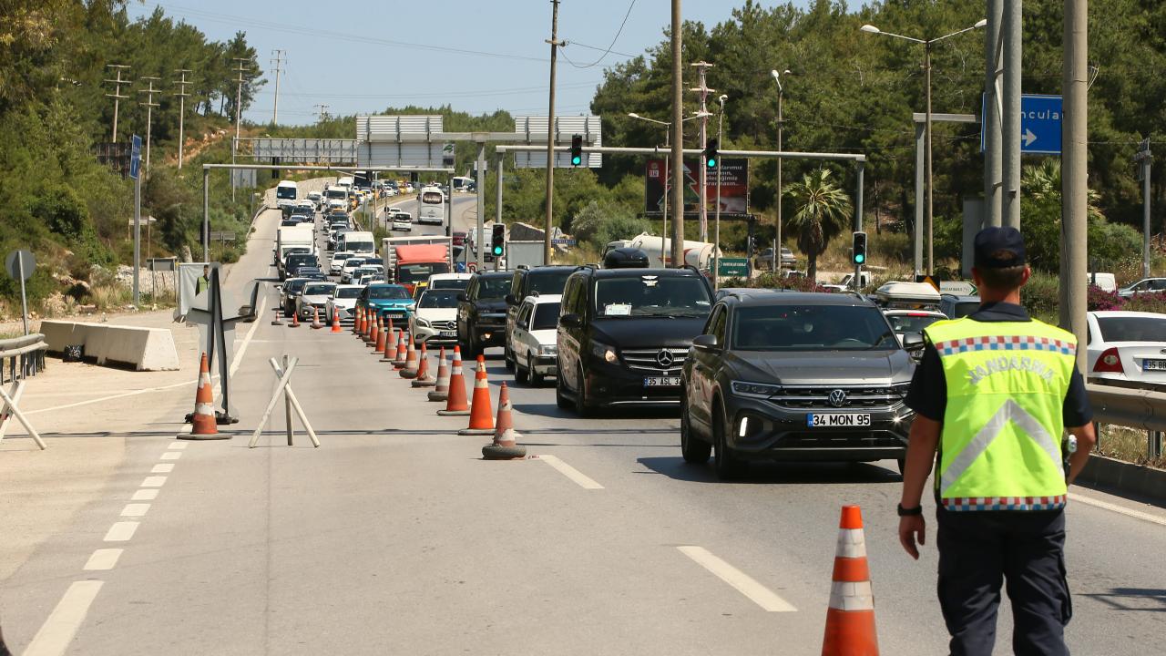 Fethiye`ye gelen tatilciler, Ölüdeniz Mahallesi`ne giden yolda yaklaşık 5 kilometrelik araç kuyruğu oluşturdu. Trafikte aksamaların önüne geçmek için jandarma ekipleri kavşaklarda ve yolda görev yaptı.