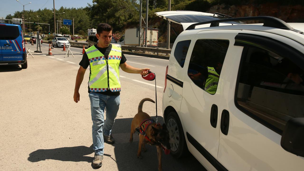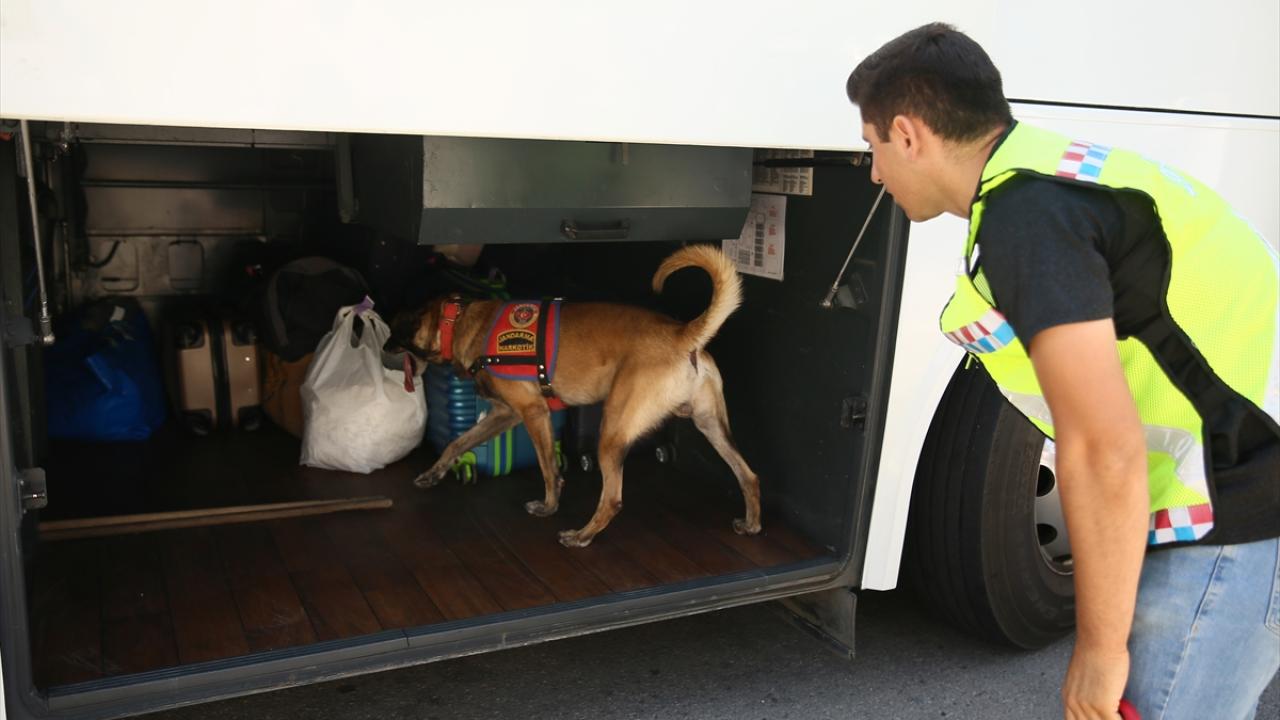 Denetimlerde uyuşturucu arama köpeği "Efor" da bazı araçlar üzerinde arama yaptı.