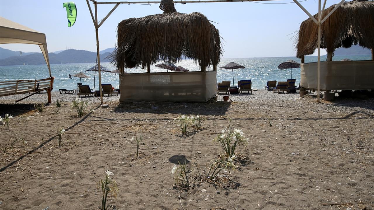 Muğla`nın bazı sahillerinde doğal şekilde yetişen kum zambakları, çevre dernekleri ile çevreciler tarafından korunuyor.