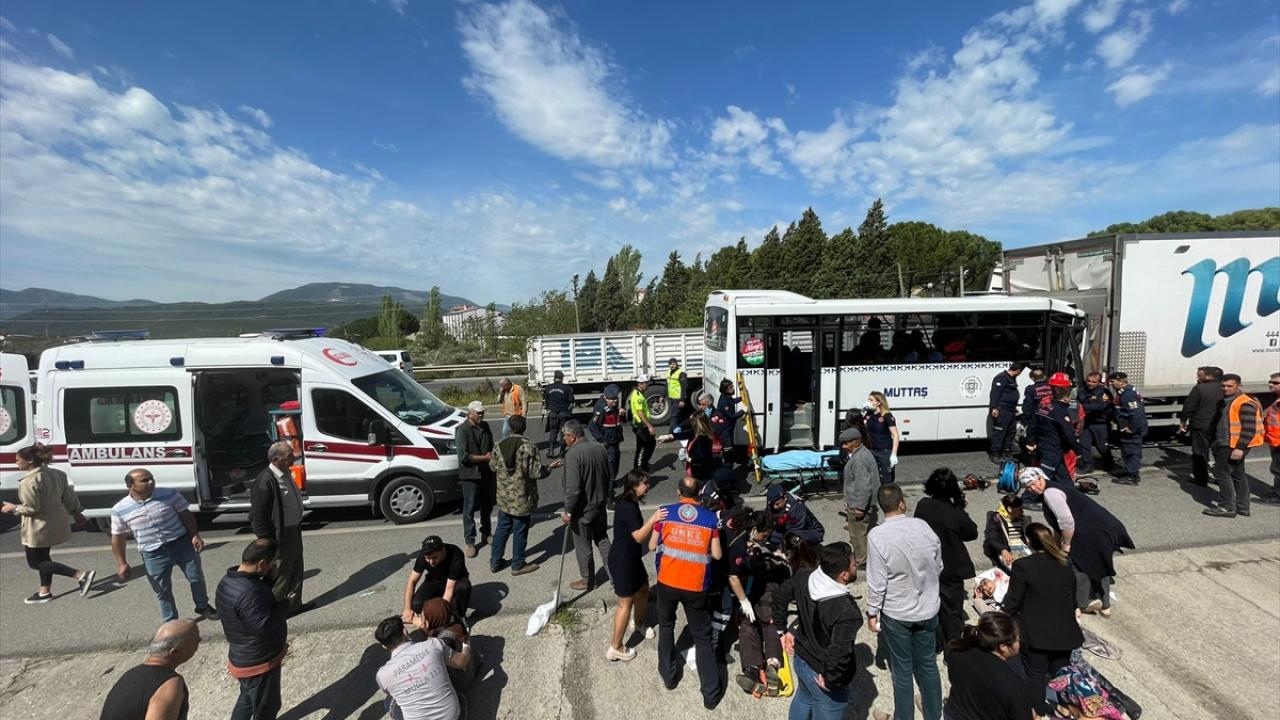 Kaza saat 10.30 sıralarında Menteşe-Yatağan karayolu Bozarmut Mahallesi çıkışında meydana geldi. Muğla Büyükşehir Belediyesi’ne ait yolcu taşıdığı öğrenilen midibüs, aynı yönde ilerleyen lojistik firmasına ait kamyona arkadan çarptı.