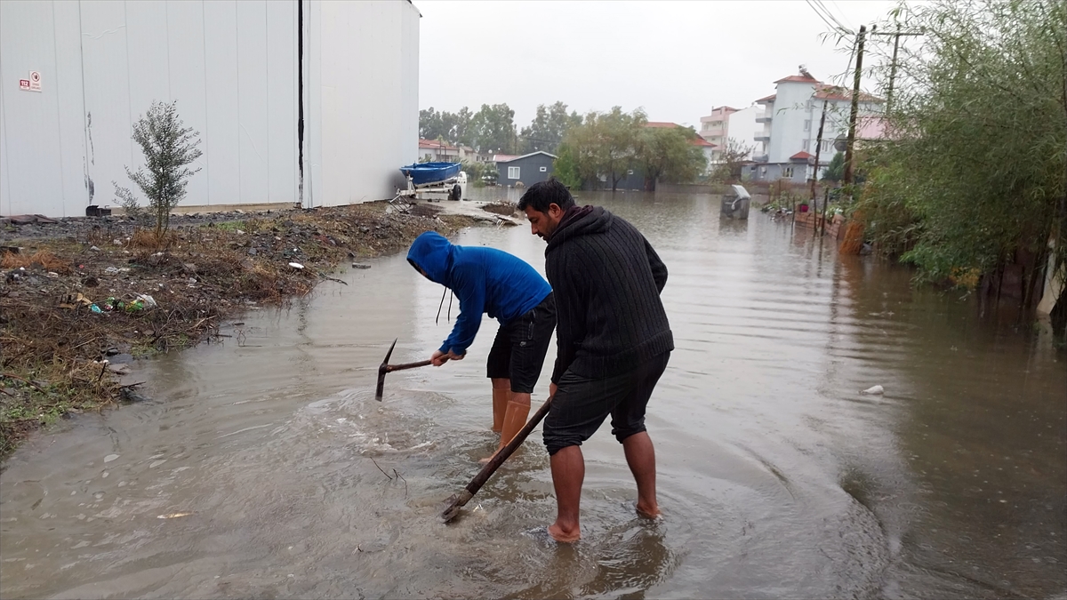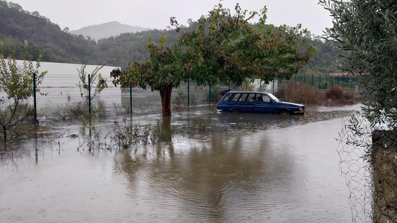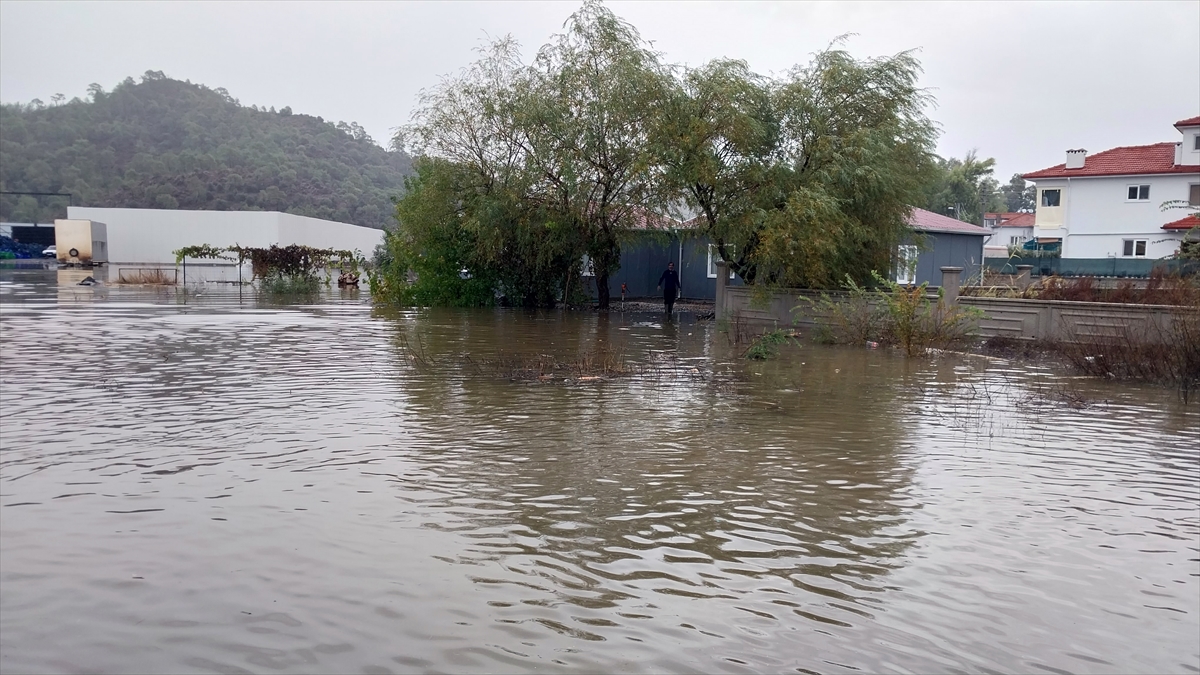 Muğla’nın Ortaca ilçesinde etkili olan sağanak nedeniyle bazı ev ve iş yerlerini su bastı.