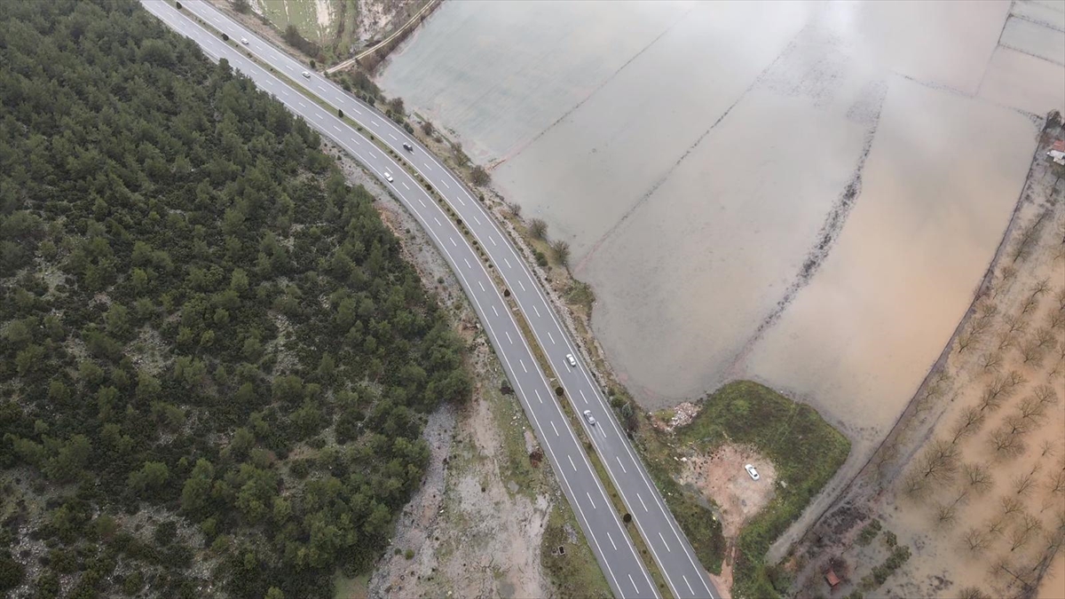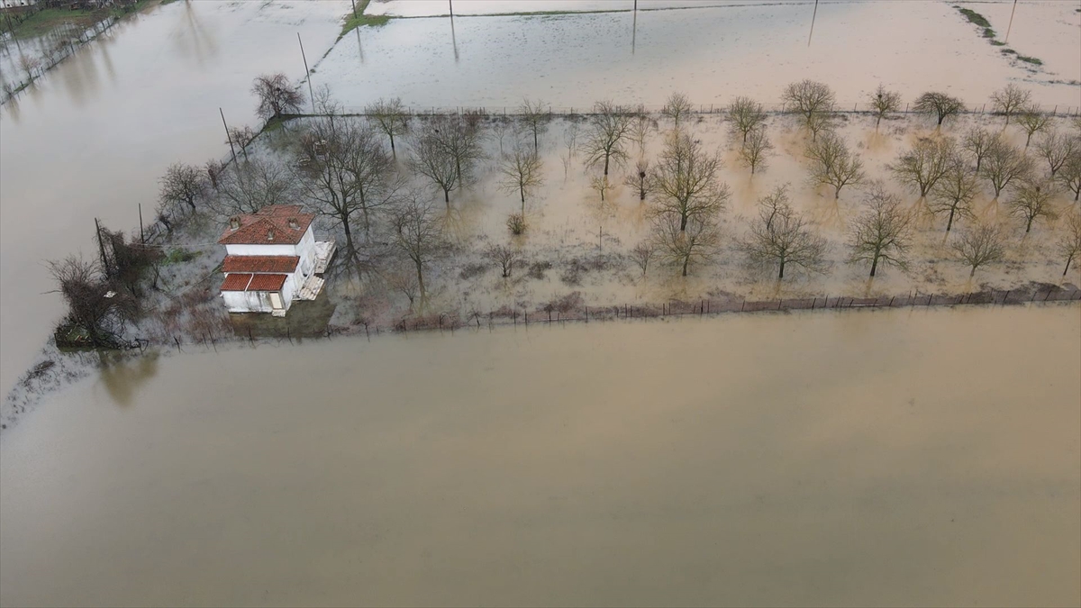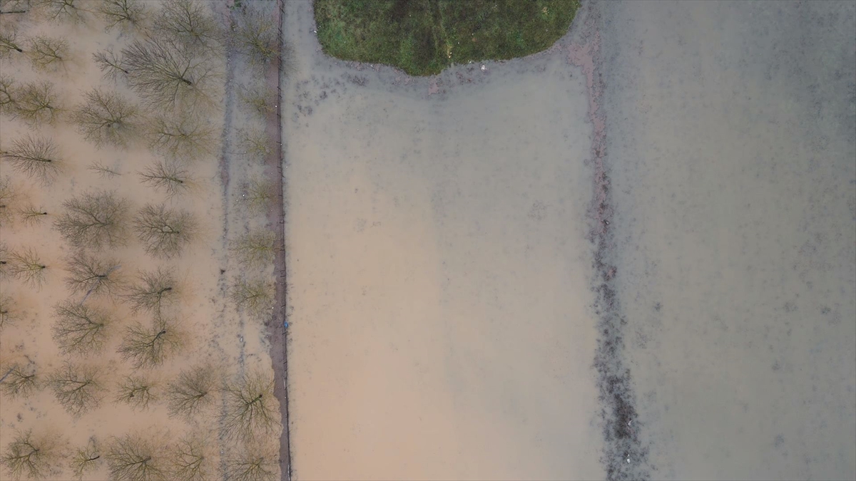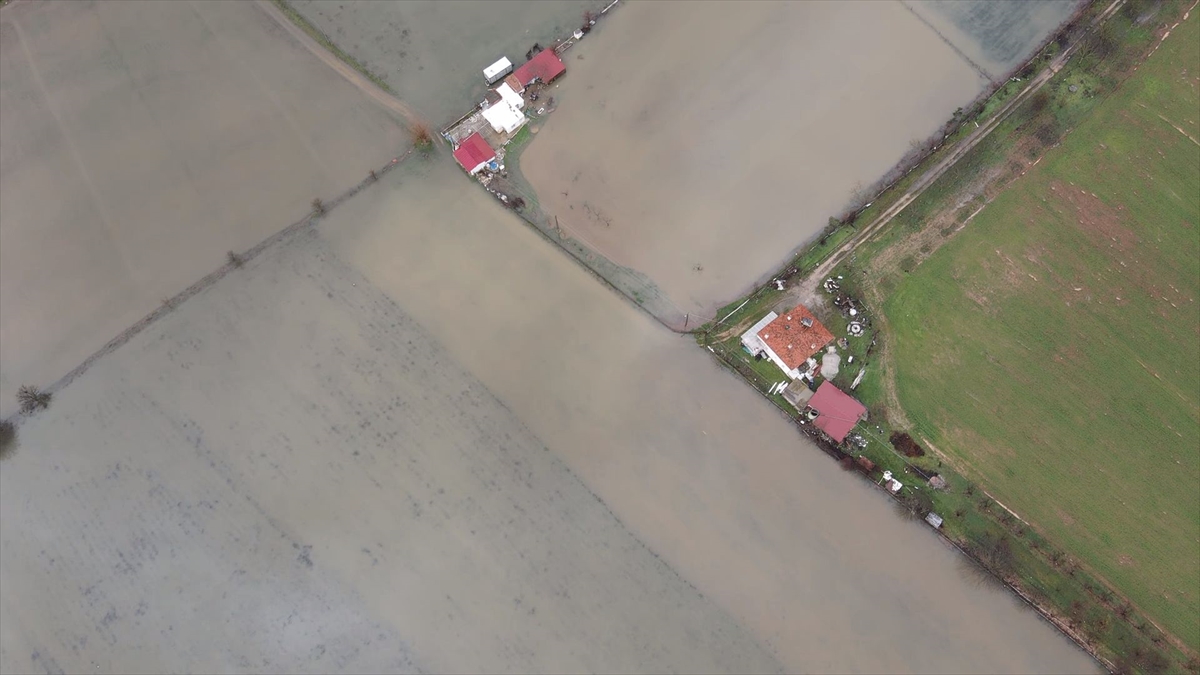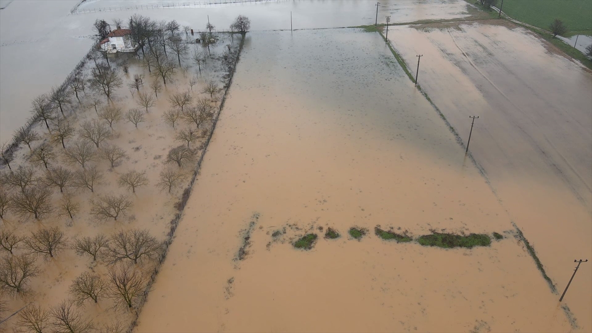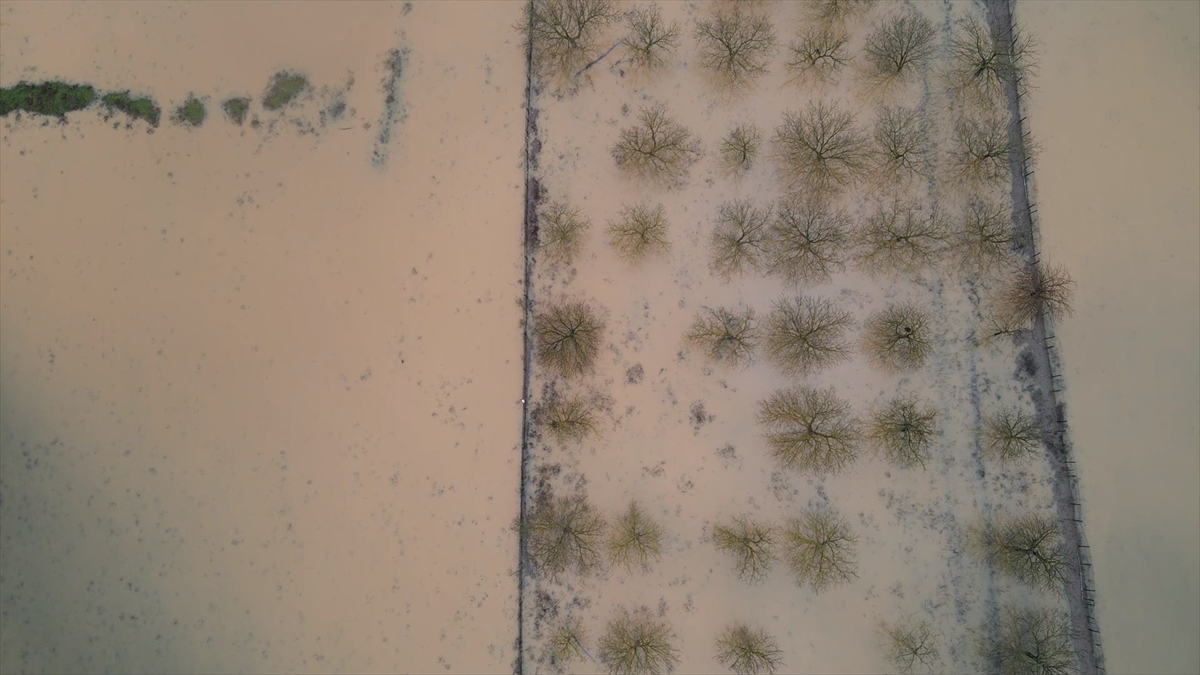 Dün akşam saatlerinden itibaren etkisini artıran sağanak nedeniyle sular altında kalan tarım arazileri dronla görüntülendi.