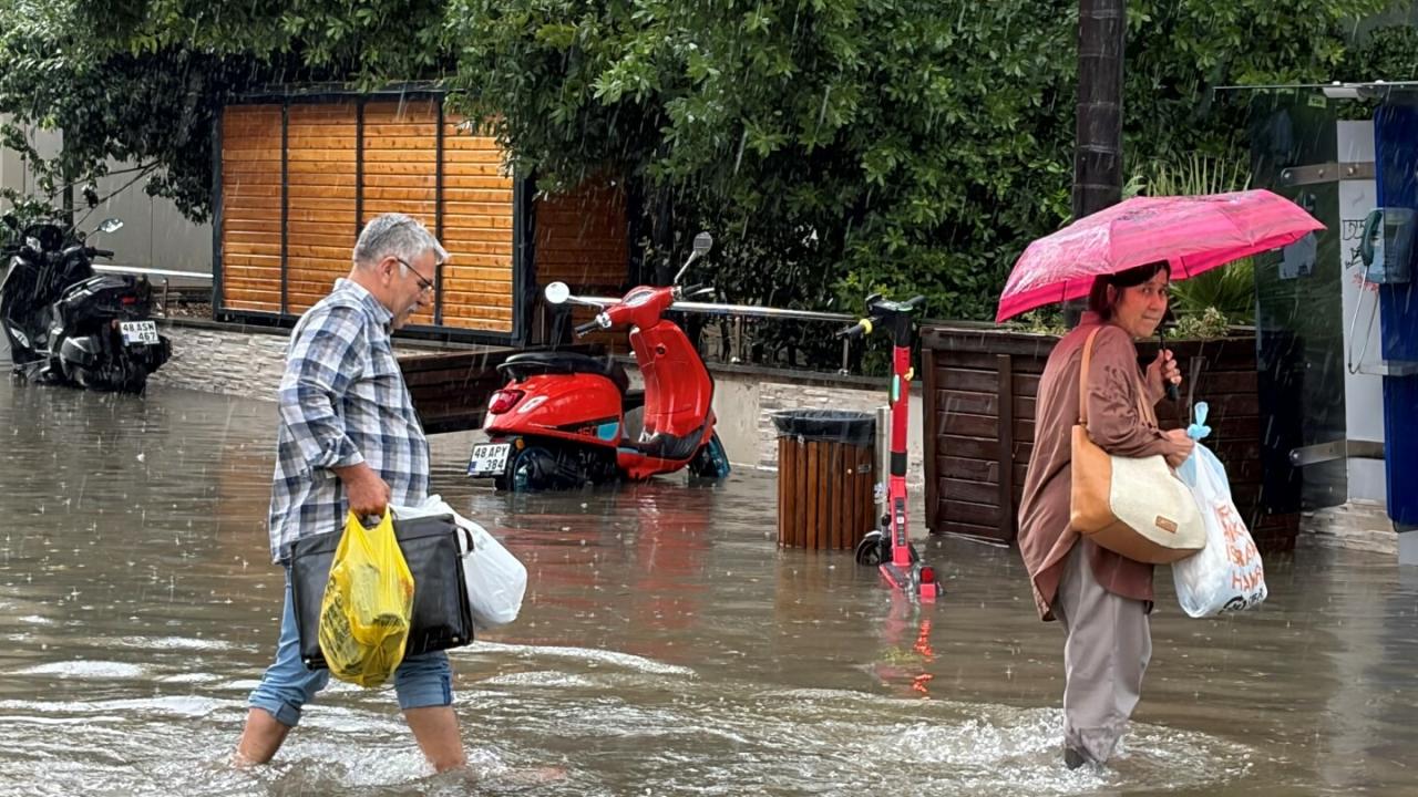 Menteşe ilçesinde ise sağanak ve dolu sebebiyle su birikintileri oluştu, araçlar ilerlemekte güçlük çekti, yayalar zor anlar yaşadı.