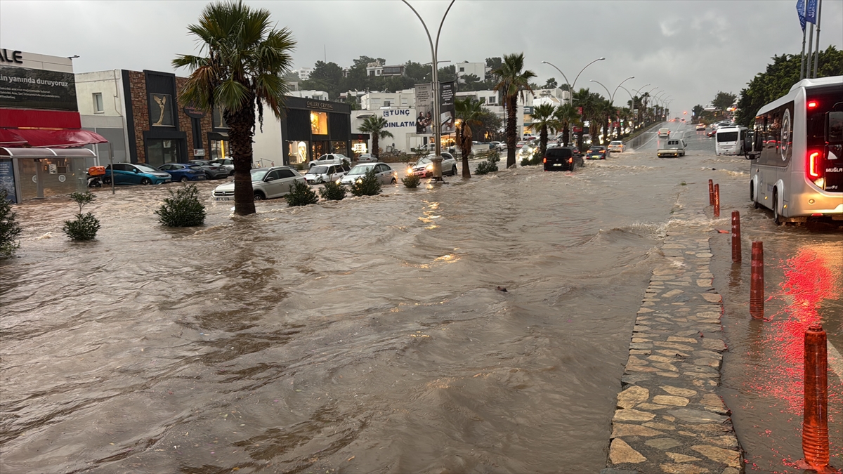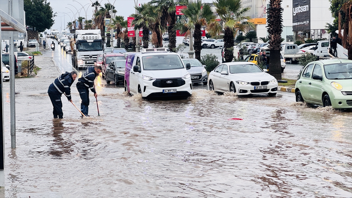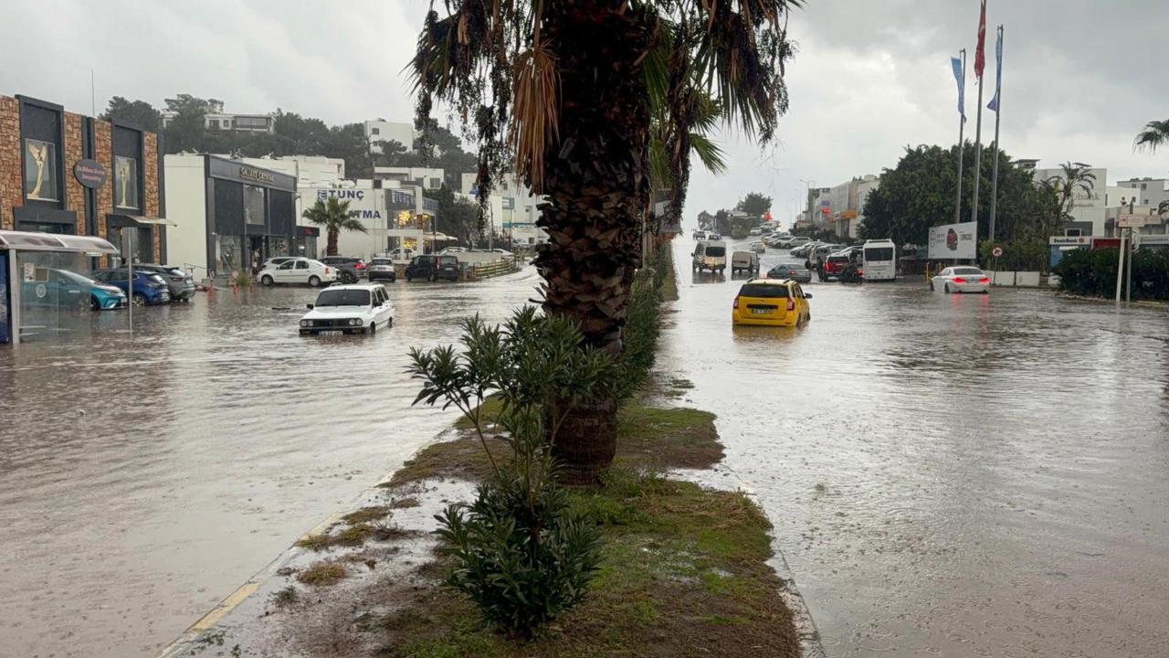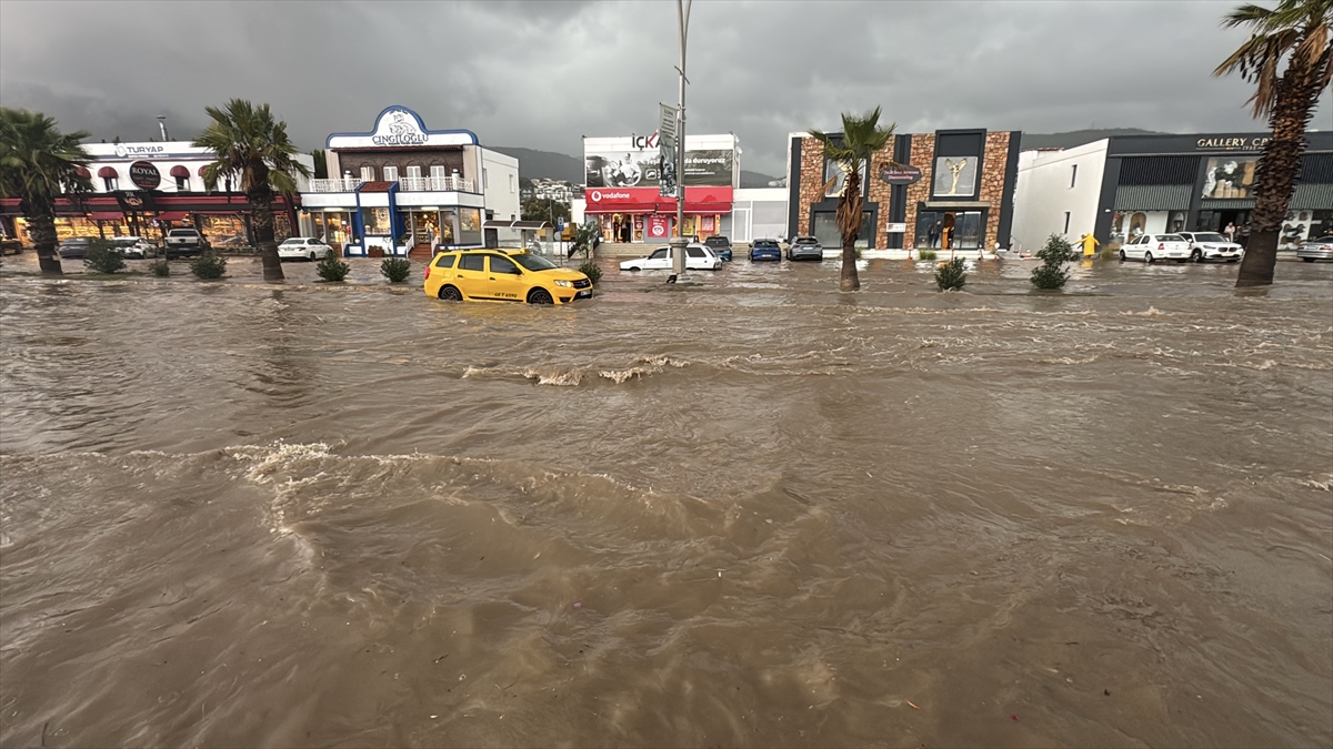 Bodrum`da sabah saatlerinden itibaren şiddetli sağanak etkili oldu. Bodrum-Turgutreis ve Gümbet istikametindeki cadde ve sokaklar göle döndü, bazı araçlar yolda mahsur kaldı.