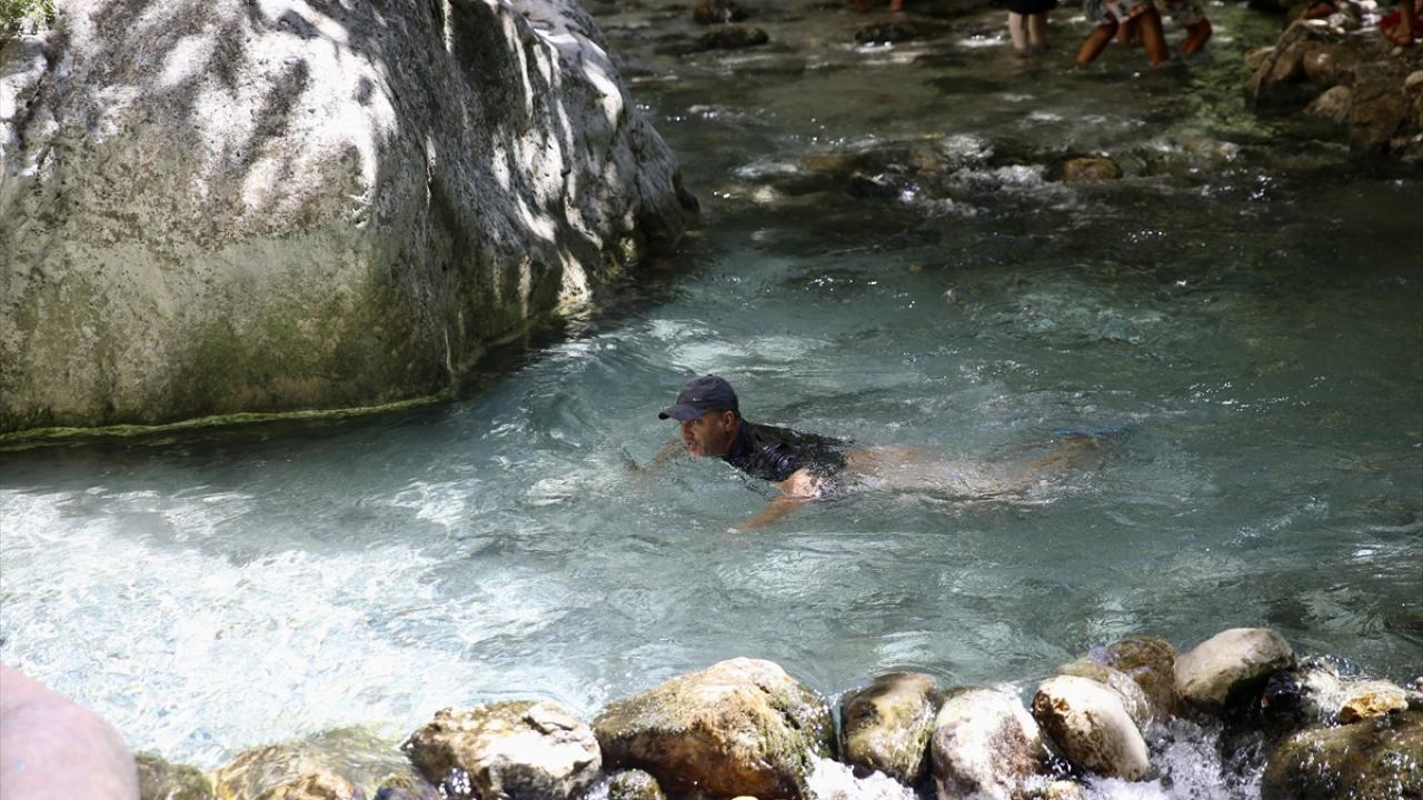 İç Anadolu`ya göre bölgenin sıcak olduğunu dile getiren Köse, "Bir an önce kendimizi serin sulara atmak istiyoruz ama bu suya da fazla dayanamıyoruz. Yarım dakika durup tekrar çıkıyoruz ama çok güzel herkese tavsiye diyoruz." dedi.