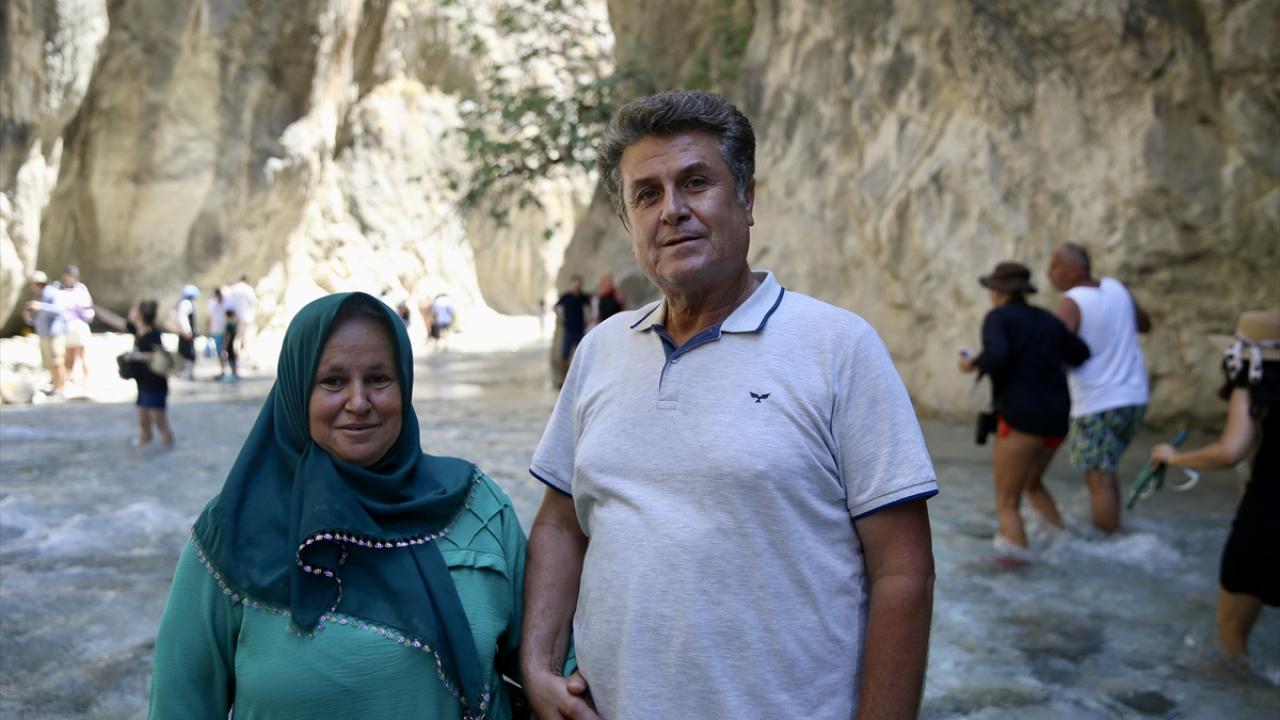 Eşiyle serin sularda yürüyen Mustafa Okşak da bölgede yaşadıklarını, sık sık kanyonda serinlediklerini ve misafirlerini gezdirdiklerini anlattı.
