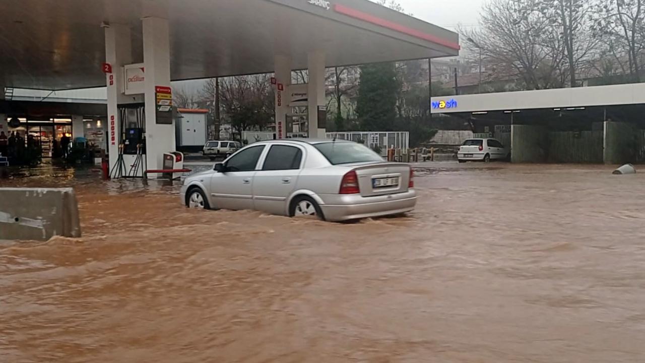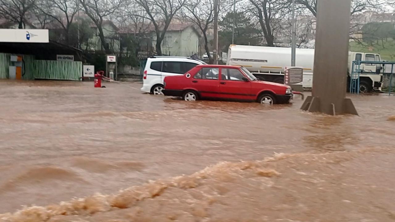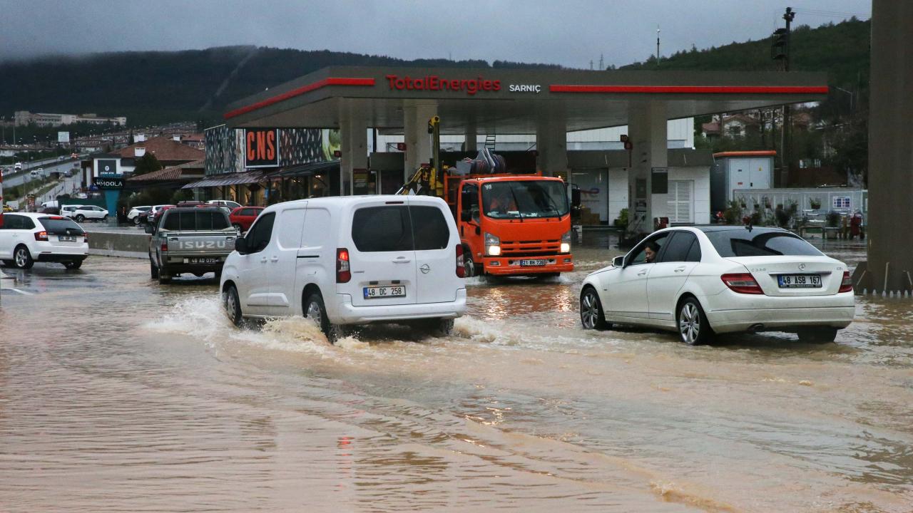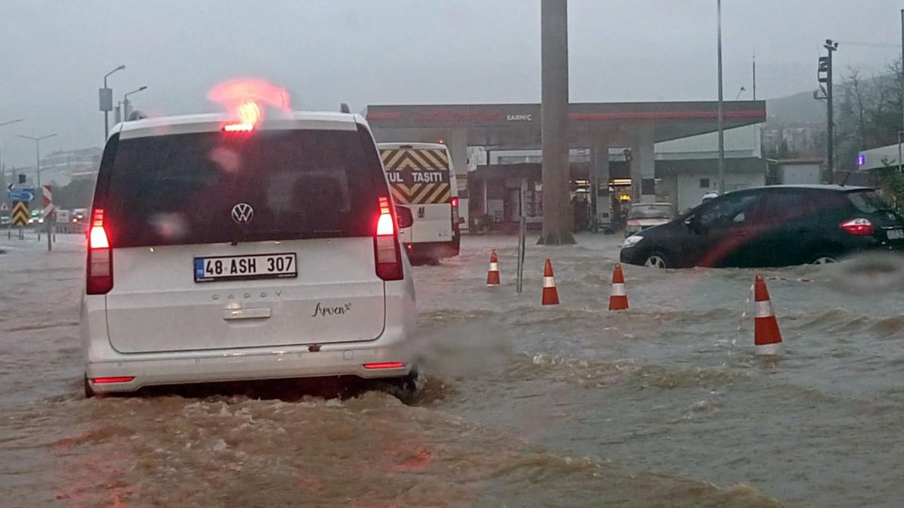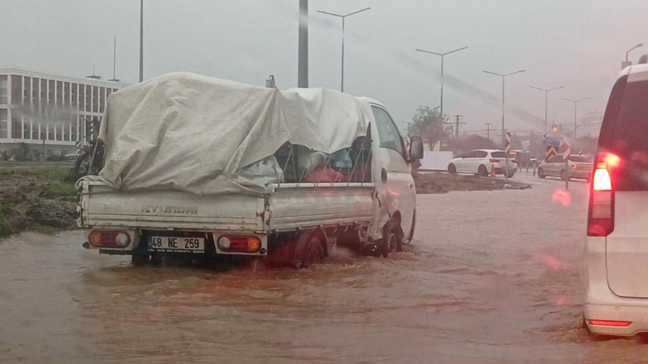 Muğla'nın Menteşe ilçesinde sağanak nedeniyle yollarda su birikintileri oluştu, bazı araçlar yolda kaldı.