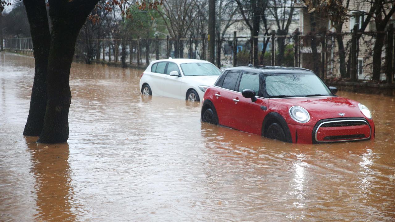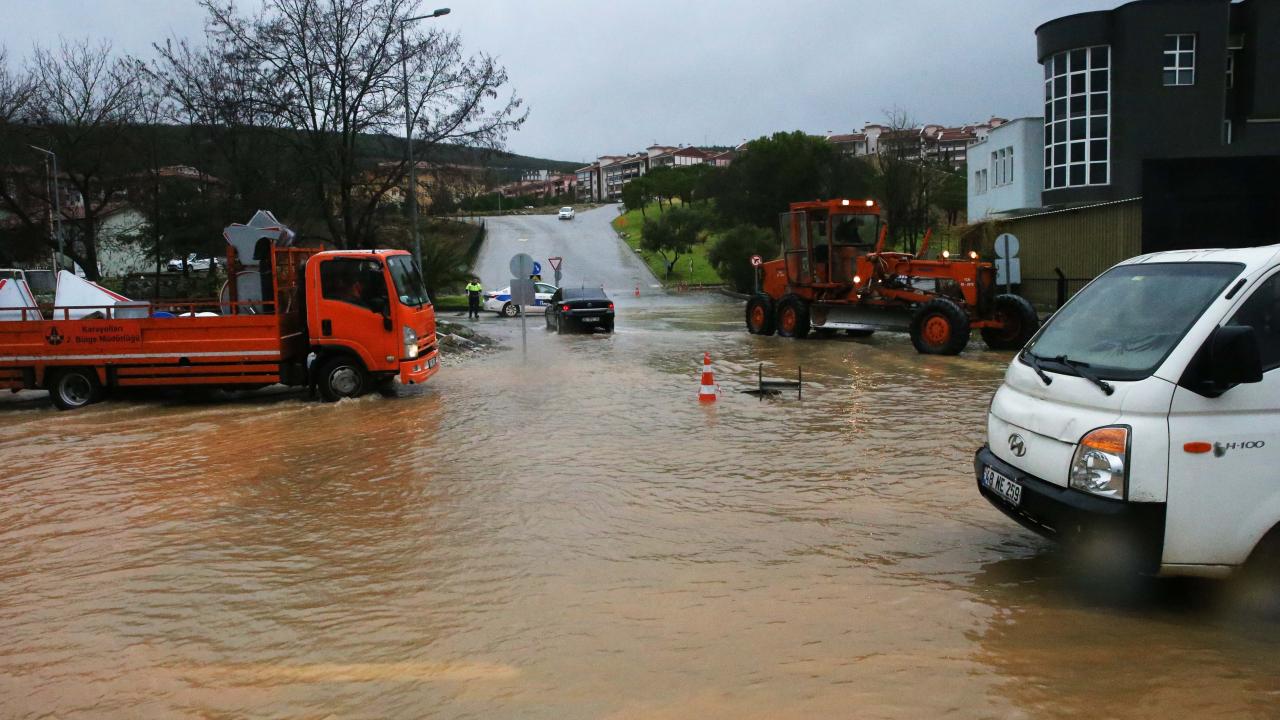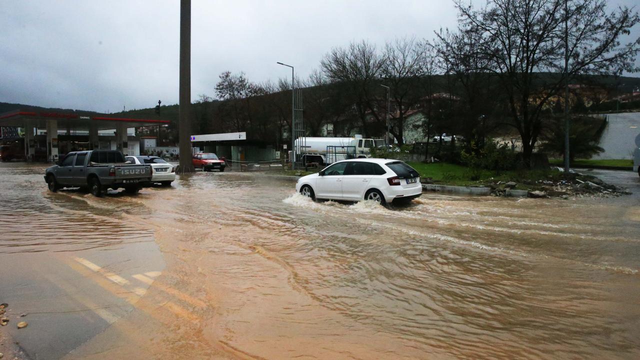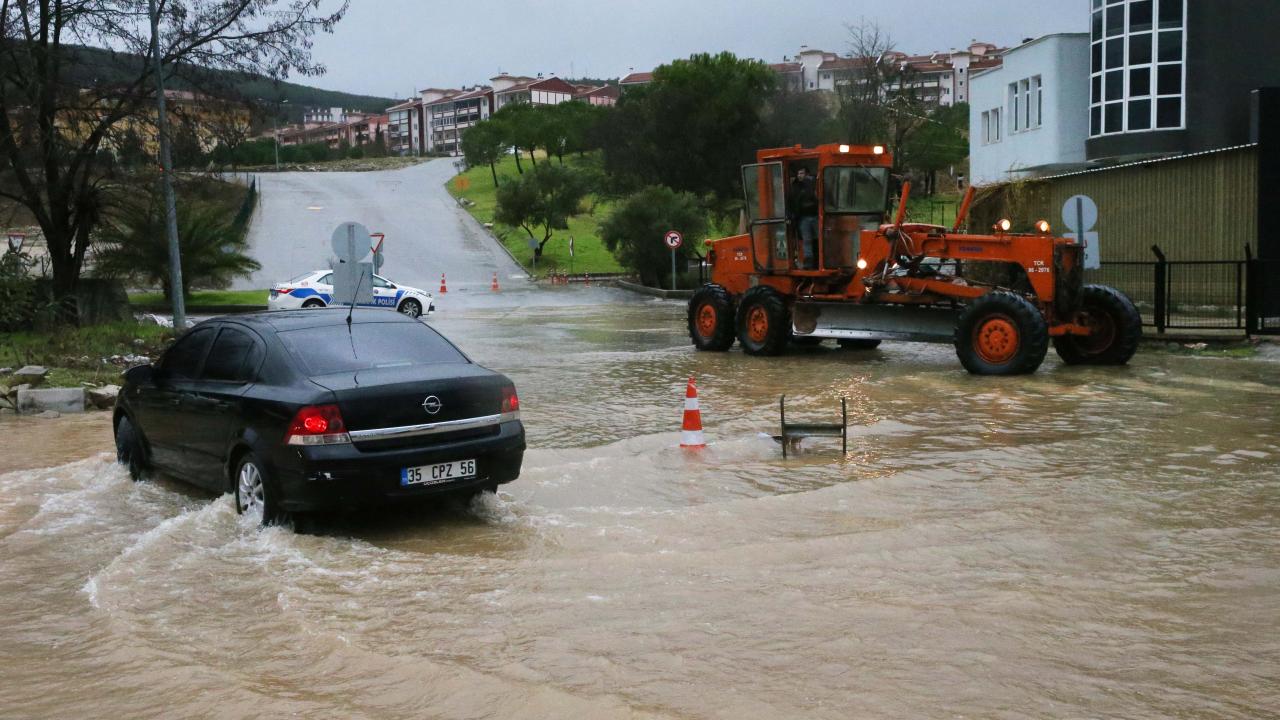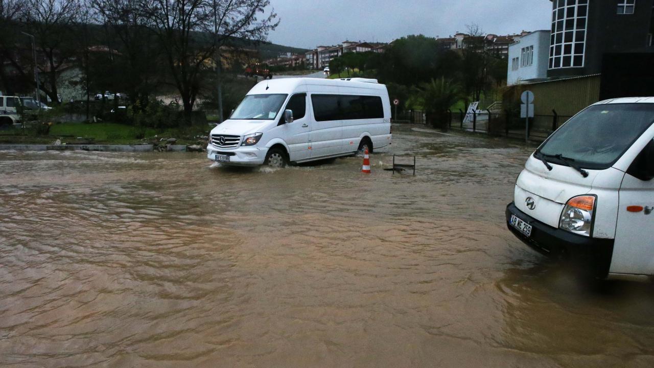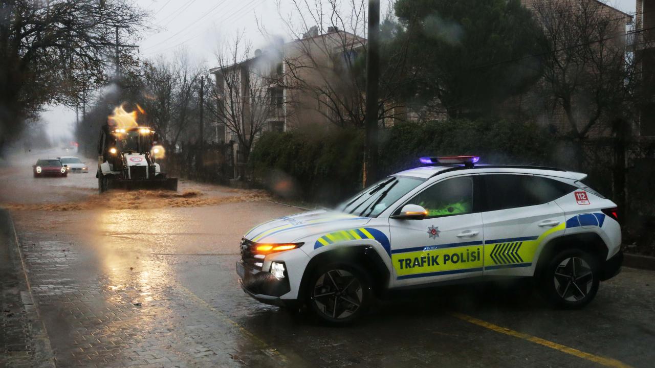 Muğla'nın Menteşe ilçesinde sağanak nedeniyle yollarda su birikintileri oluştu, bazı araçlar yolda kaldı.