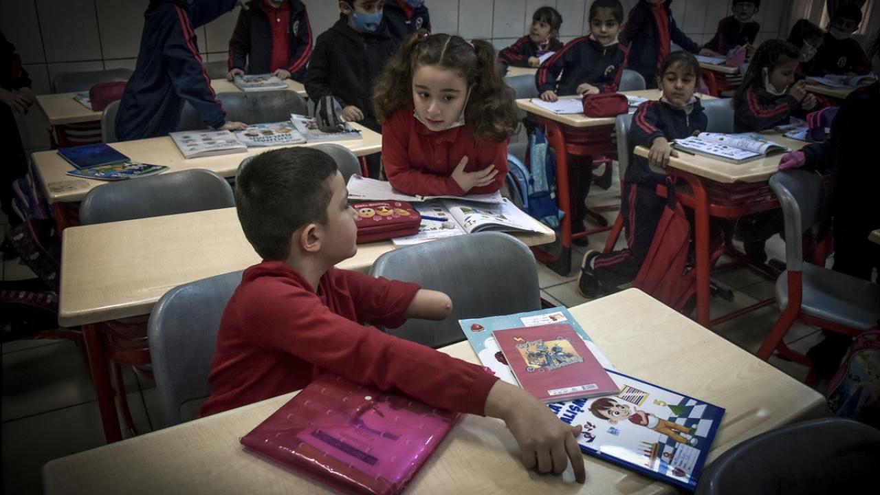 Şehit Polis Bülent Aslan İlkokulunda birinci sınıfa devam eden Muhammed Ali, her sabah sınıfa girdiğinde arkadaşları tarafından alkışlarla karşılanıyor.