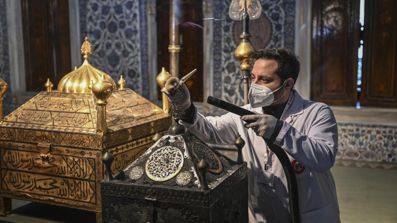 Mukaddes Emanetler Dairesinin bakım ve temizliğini, Türkiye`de müzecilik alanında bir ilk olma özelliği taşıyan Milli Saraylar Obje Bakım ve Konservasyon Ekibi yürütüyor.