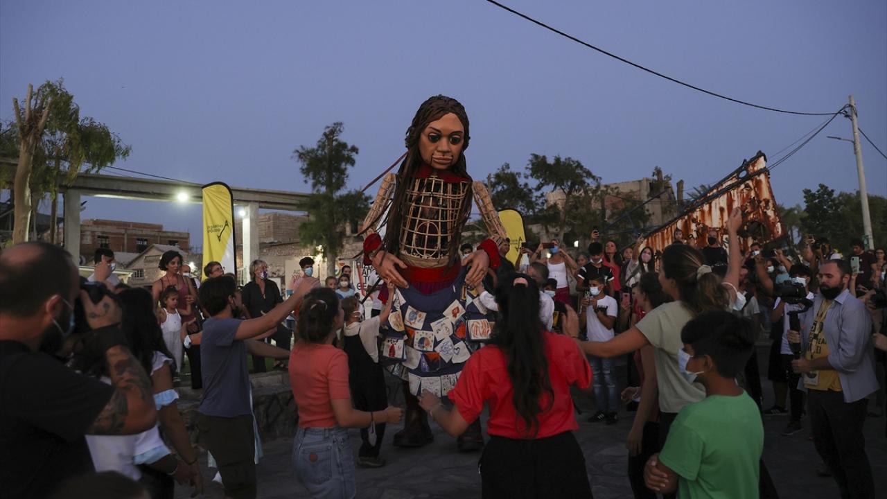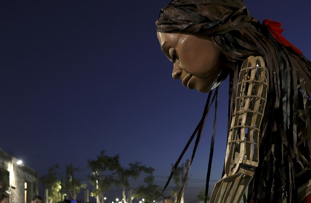 Suriyeli mülteci çocukların yaşadığı zorlukların dünya gündemine taşınması amacıyla tasarlanan 3,5 metre uzunluğundaki kukla "Küçük Amal"a Yunanistan’da engel çıktı.