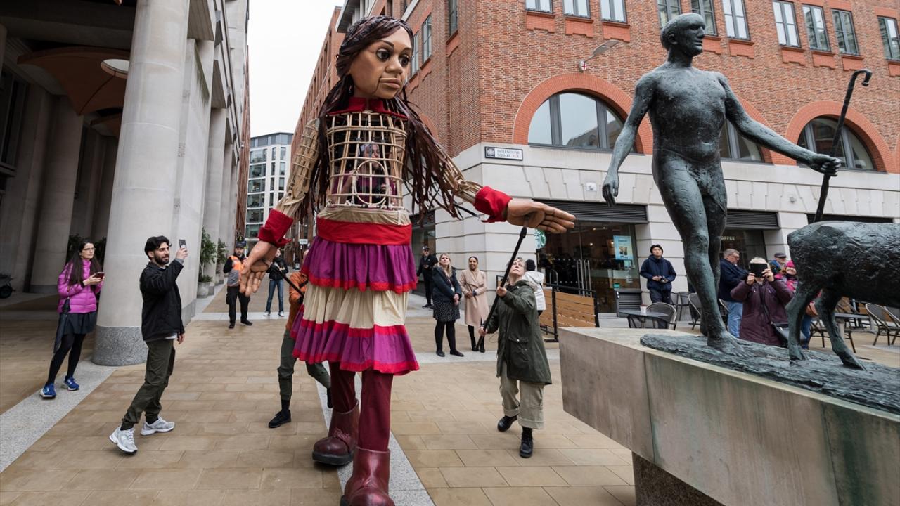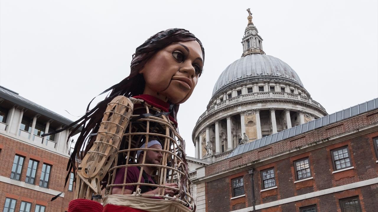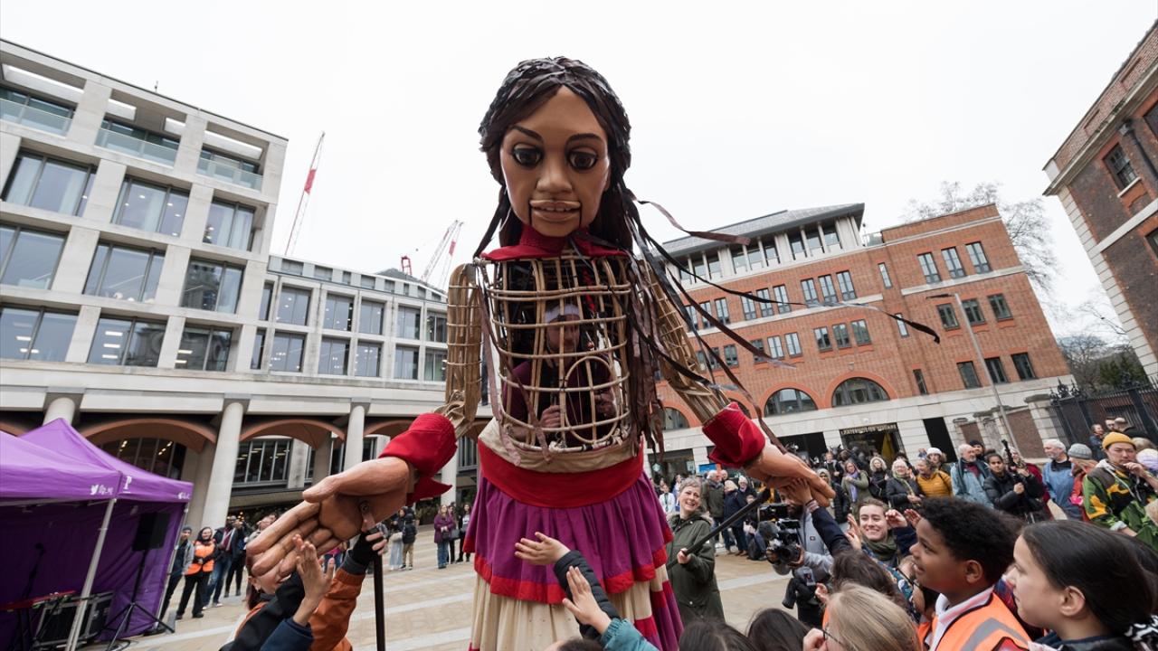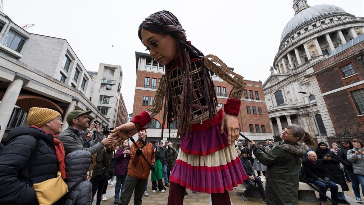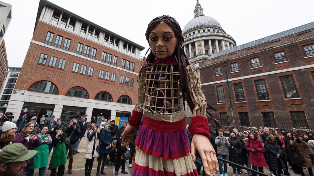 Suriyeli mülteci çocukların yaşadığı zorlukların dünya gündemine taşınması amacıyla tasarlanan 3,5 metre uzunluğundaki kukla Küçük Amal, İngiltere'nin başkenti Londra'ya geldi.