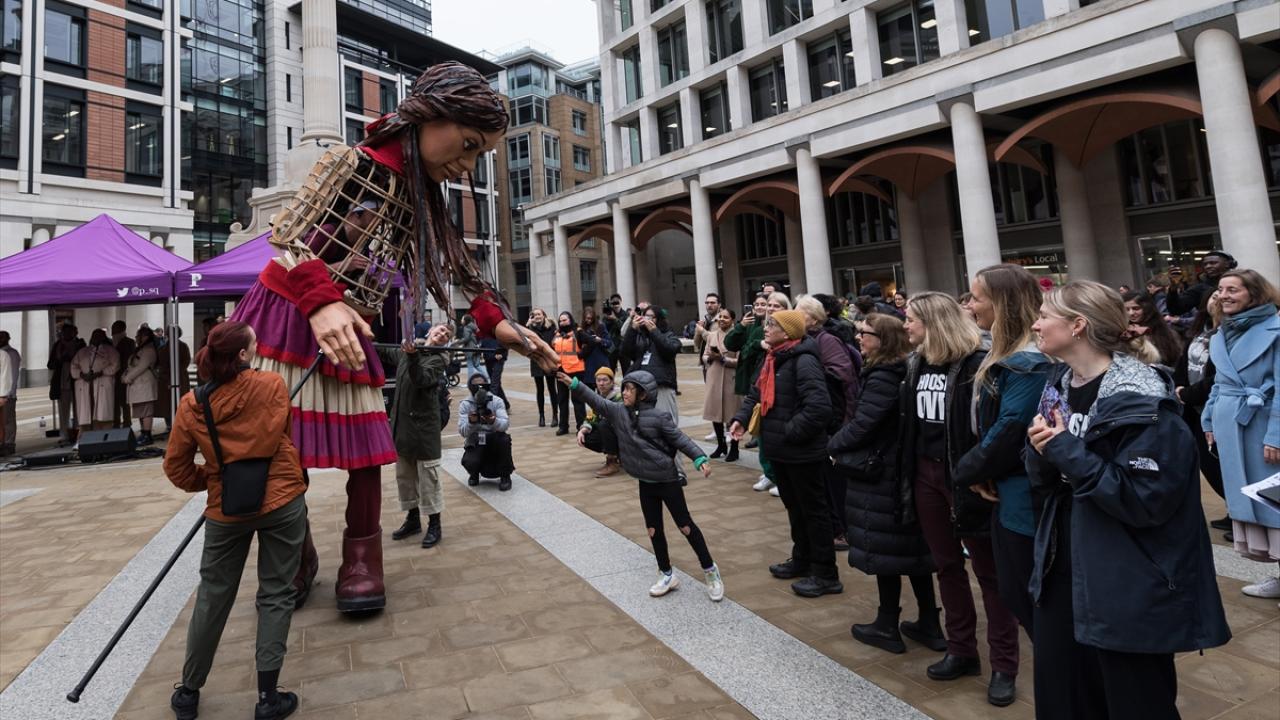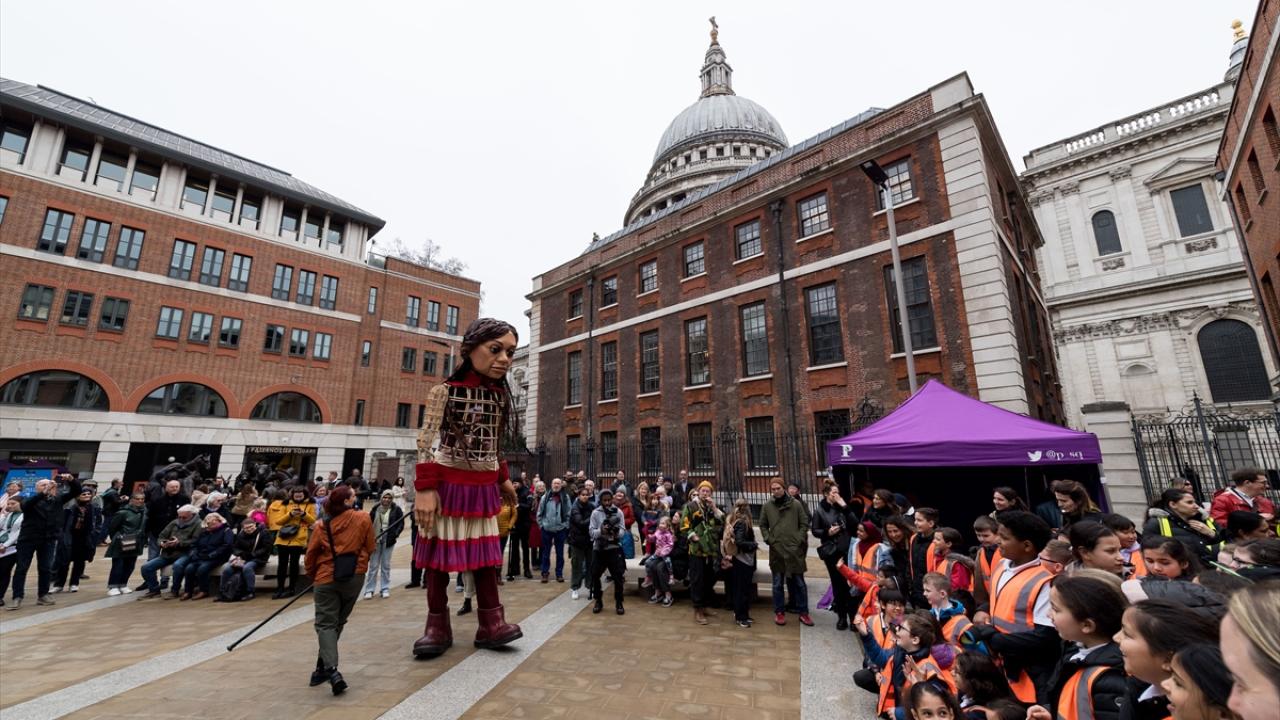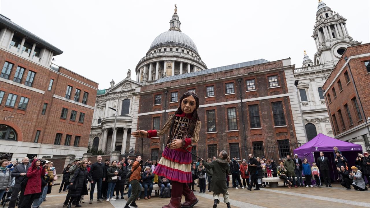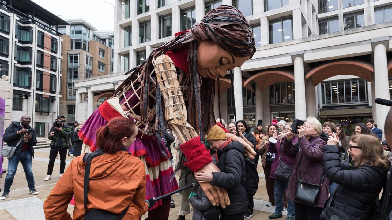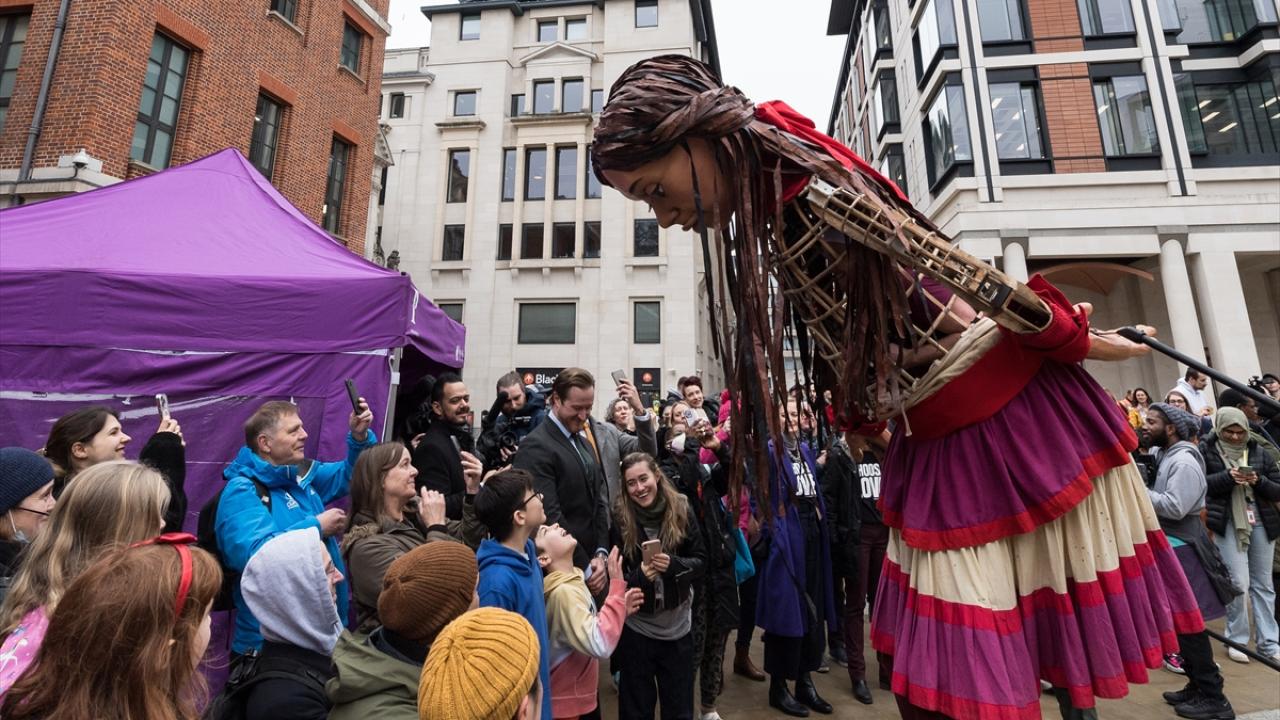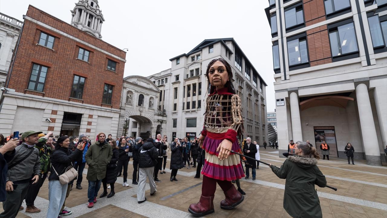 Suriyeli mülteci çocukların yaşadığı zorlukların dünya gündemine taşınması amacıyla tasarlanan 3,5 metre uzunluğundaki kukla Küçük Amal, İngiltere'nin başkenti Londra'ya geldi.