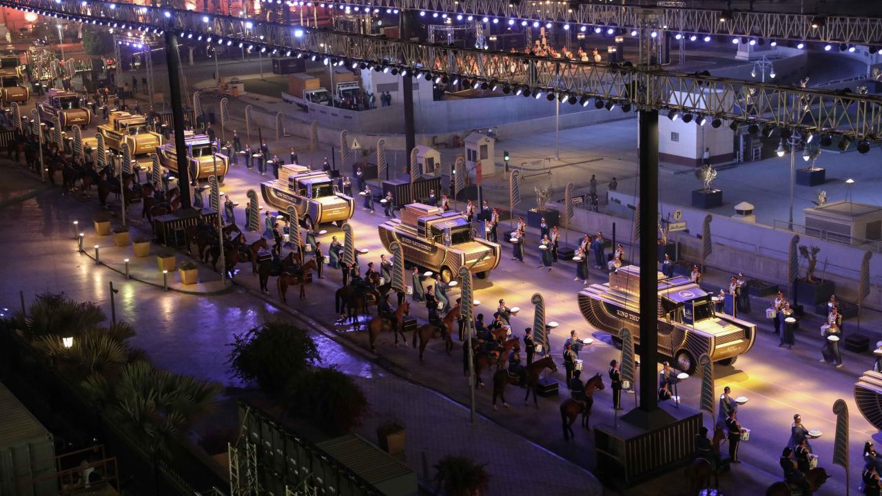 "Altın Yolculuk" ismi verilen kortejde antik Mısır döneminde kullanılan at arabalarının yanı sıra Firavun kıyafetleri giyen kadınlar ve süvariler de yer aldı.