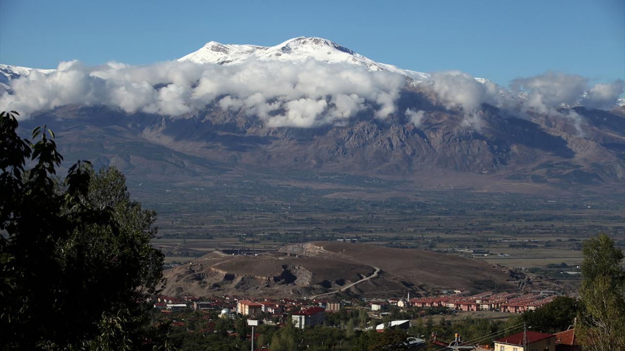 Erzincan-Tunceli sınırında bulunan 3 bin 449 metre yüksekliğindeki Munzur Dağı'nın zirvesi, mevsimin ilk karı ve sis ile ayrı bir güzelliğe büründü.