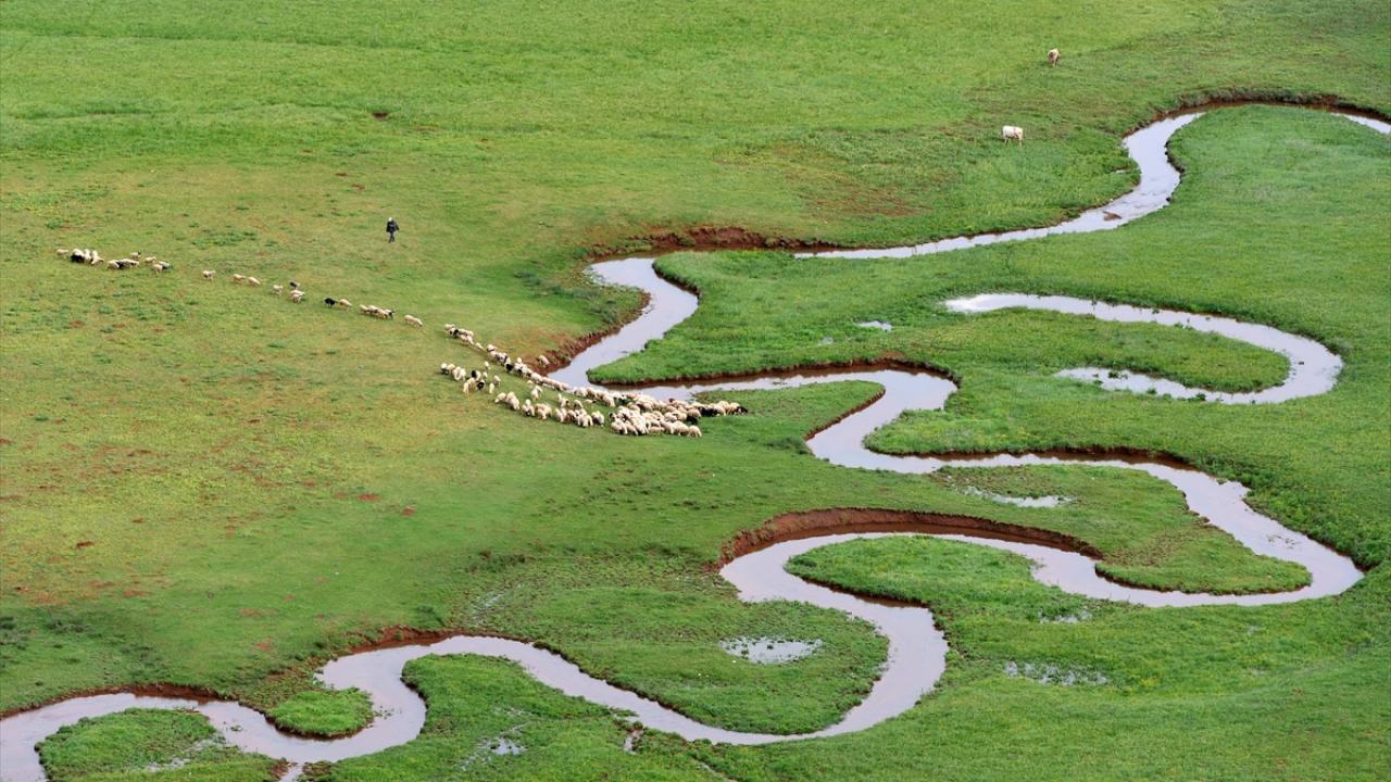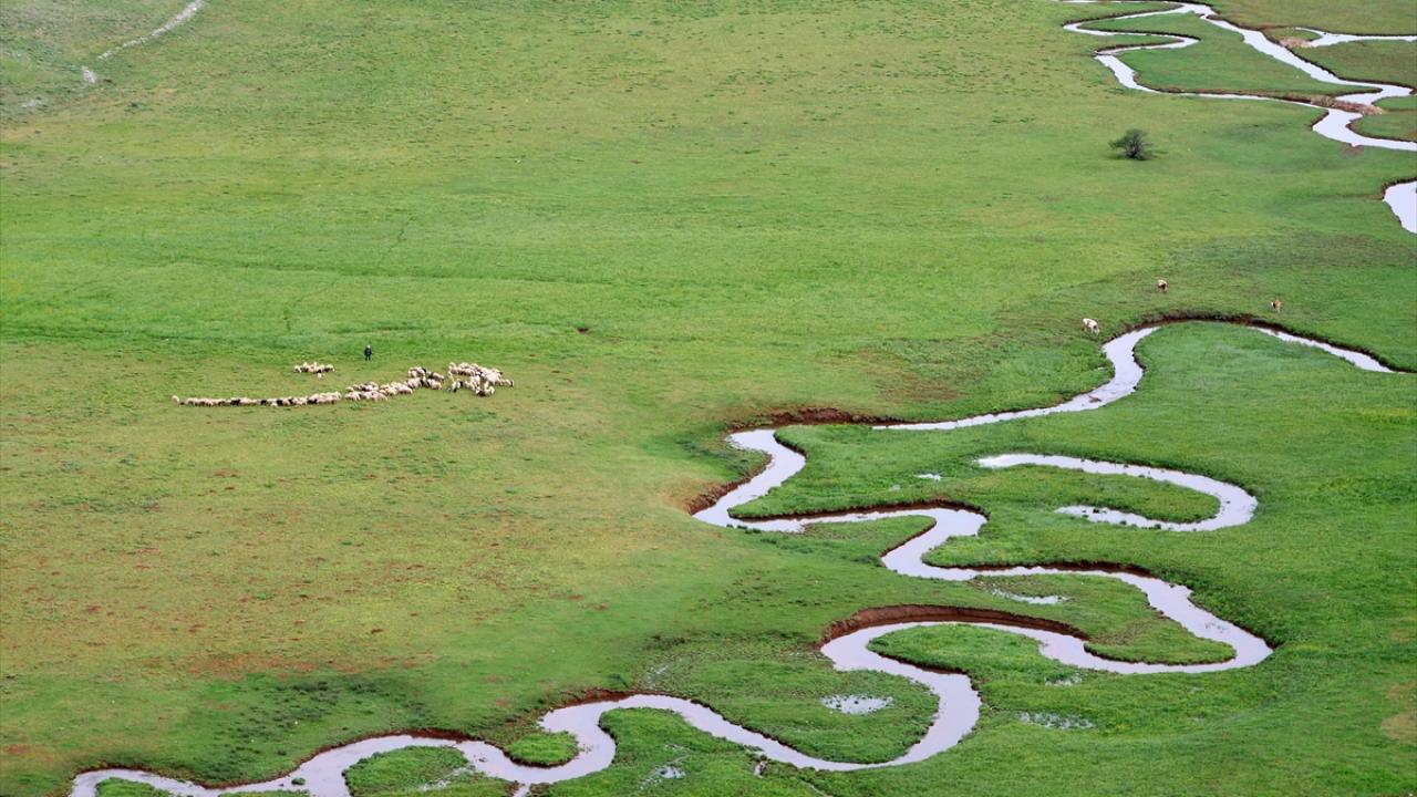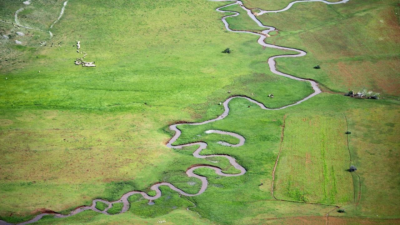 Tunceli'nin Ovacık ilçesinde yer alan Munzur Dağları'nın zirvesindeki karların erimesiyle akan derenin oluşturduğu menderesler, ilkbahar renkleri arasında güzel görüntüler sunuyor.