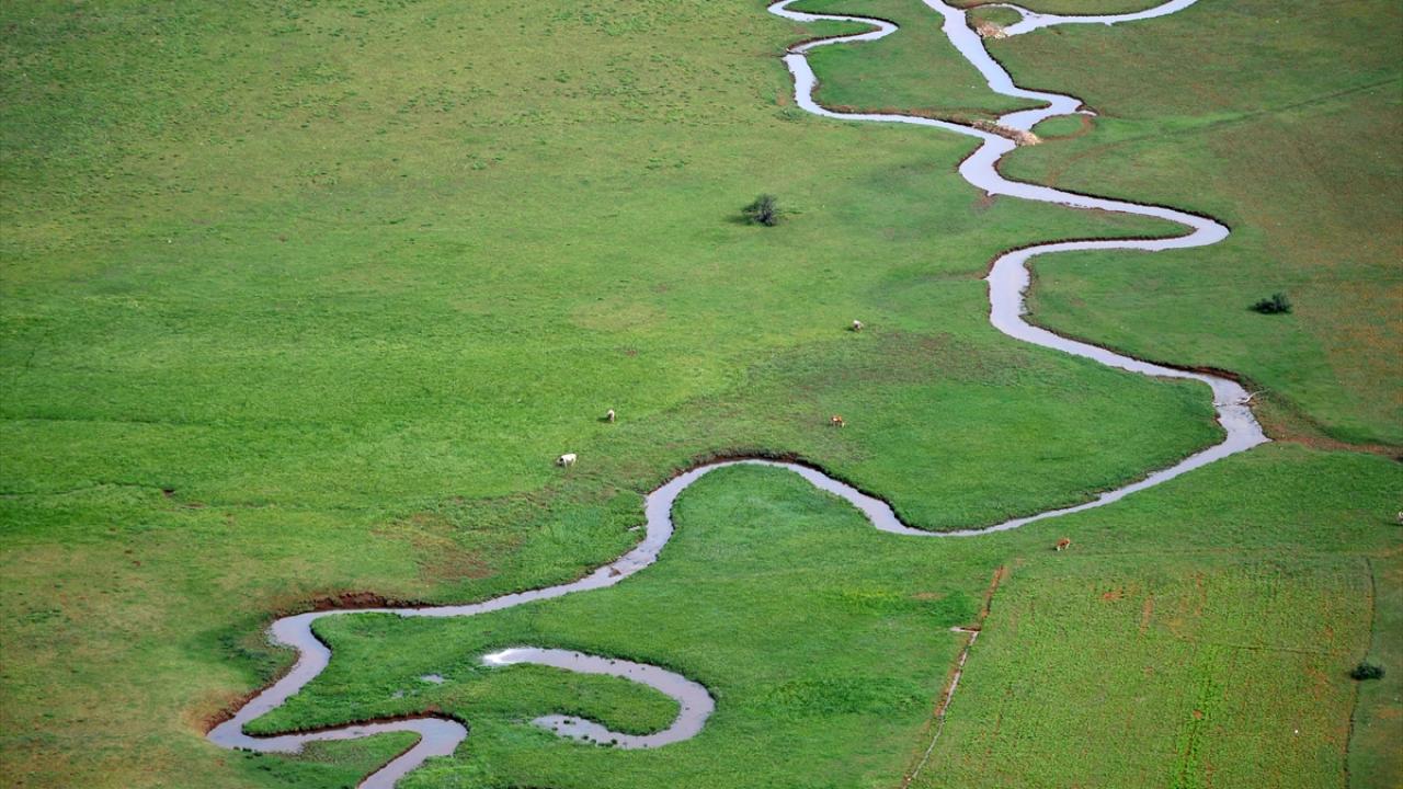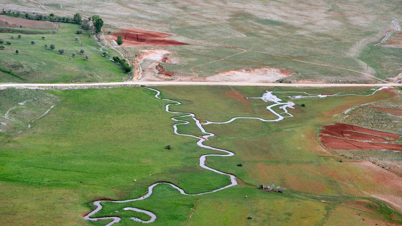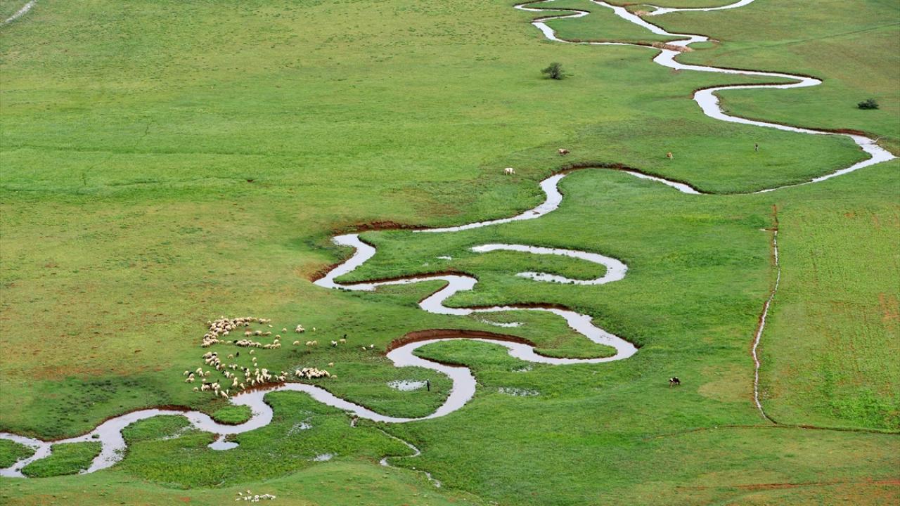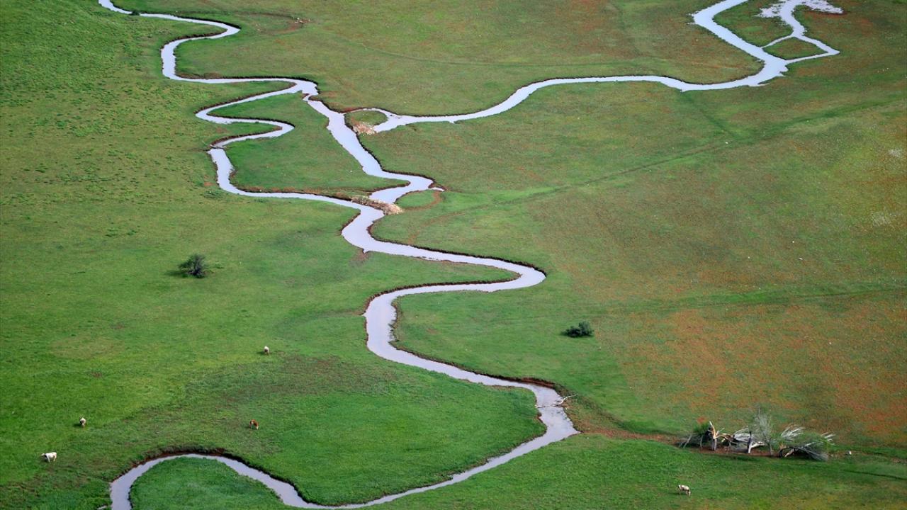 Tunceli'nin Ovacık ilçesinde yer alan Munzur Dağları'nın zirvesindeki karların erimesiyle akan derenin oluşturduğu menderesler, ilkbahar renkleri arasında güzel görüntüler sunuyor.