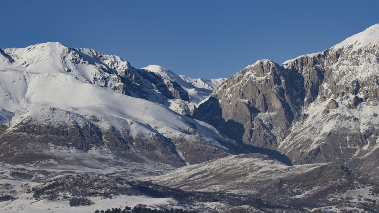Tunceli'de etkili olan kar yağışı sonrası Munzur Dağları'nın zirveleri beyaz örtüyle kaplandı.