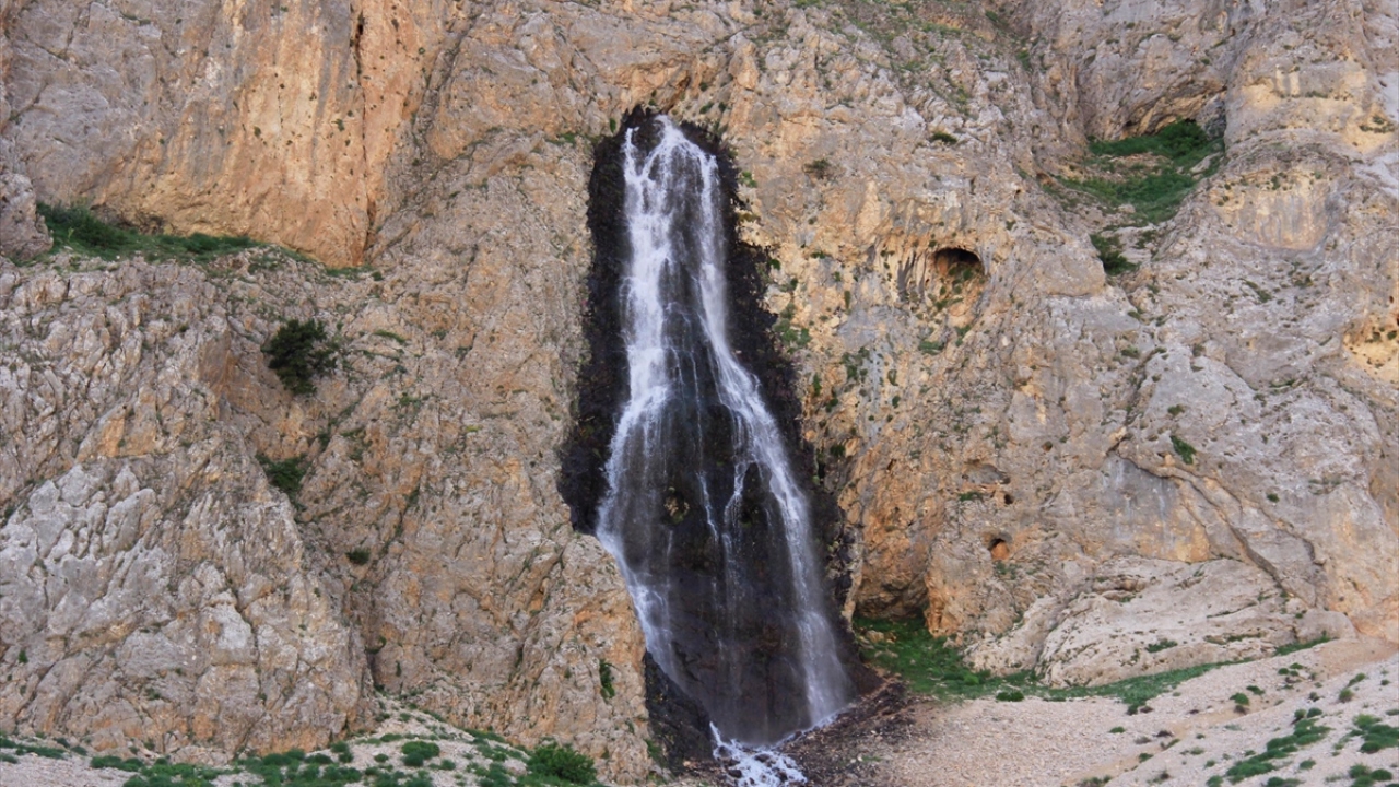 Tunceli'nin Ovacık ilçesindeki Munzur Dağları'nda karların erimesiyle yaklaşık 50 metre yükseklikten akan Dalik Şelalesi, doğal güzelliğiyle göz kamaştırıyor.