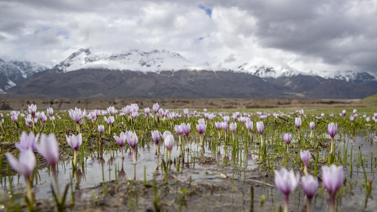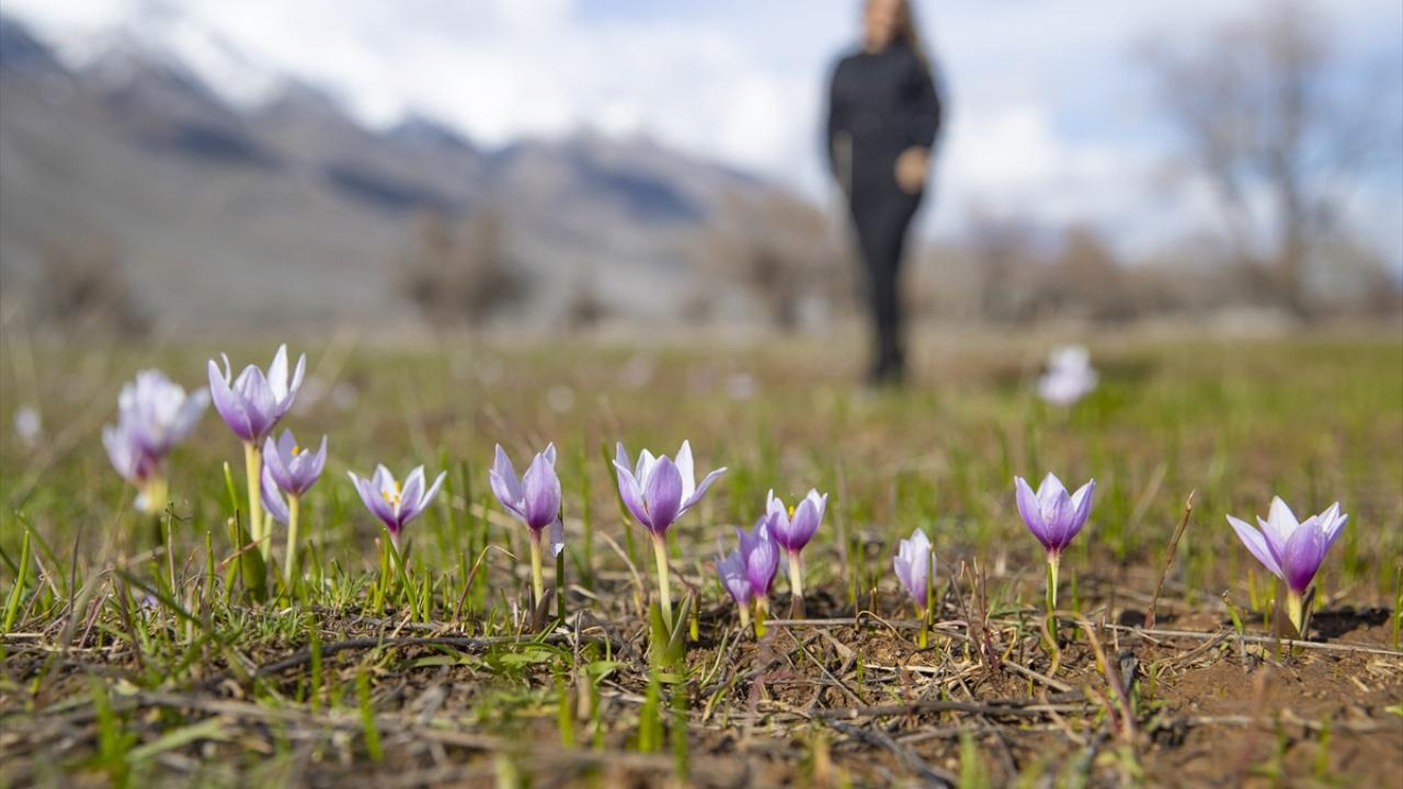 Gezintilerle bölgeyi tanıma fırsatı bulan doğa tutkunları ve fotoğrafçılar, arazide karşılaştıkları mor, beyaz, sarı ve turkuaz çiçekleri karlı zirvelerle aynı karede buluşturuyor.