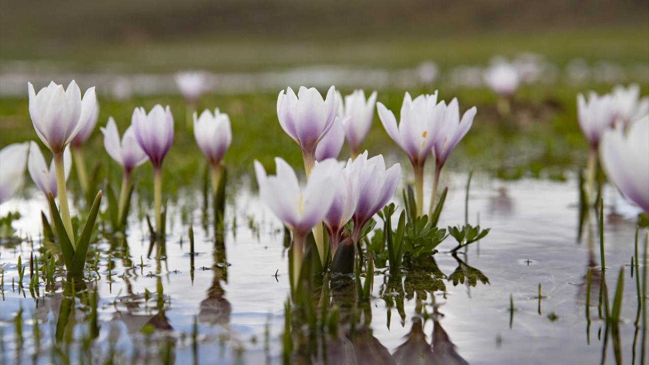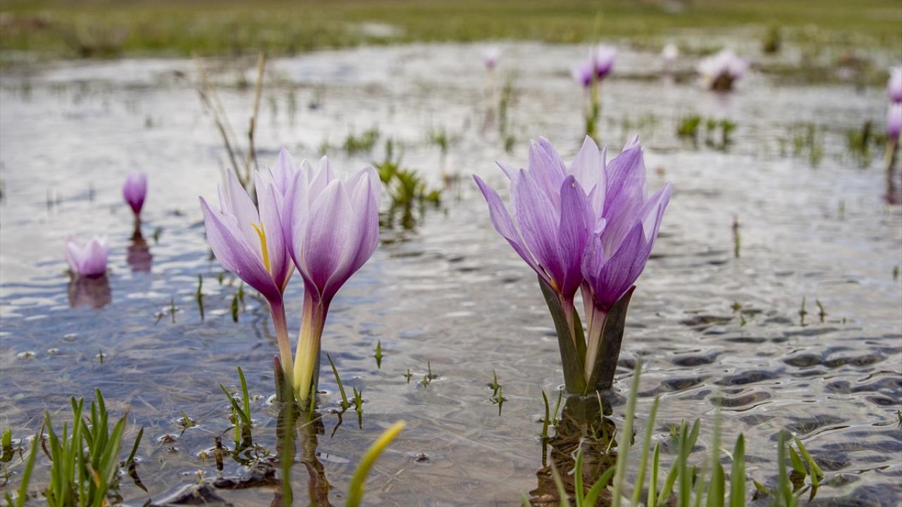 Karın erimesiyle meralar yeşillenirken, dağlık, ormanlık ve sulak araziler, baharın müjdecisi olarak adlandırılan nergis, çiğdem, nevruz ve kardelenlerle renklendi.