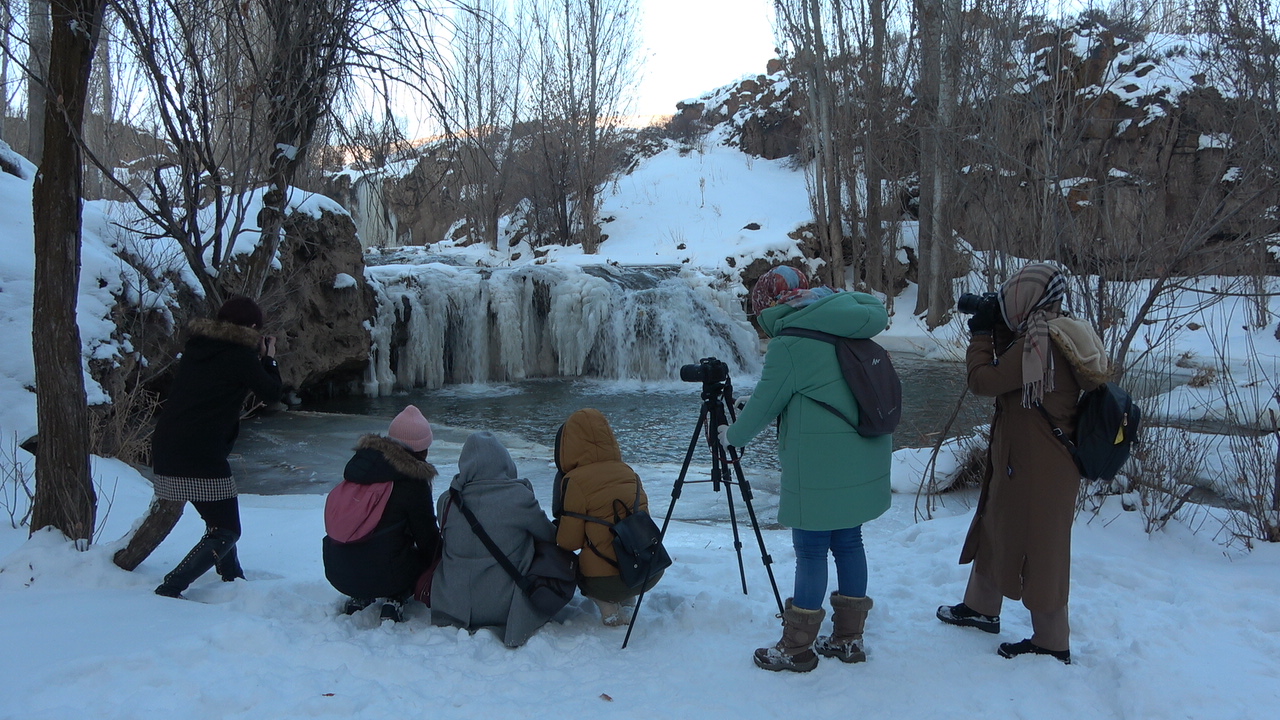 Okul öncesi öğretmeni Emine Galiç Şengöz de Halk Eğitimi Merkezindeki fotoğrafçılık kursuna katıldığını belirterek, "Bugün kursiyer arkadaşlarımla beraber Muradiye Şelalesi`ne geldik. Yazı ayrı güzel, kışı ayrı bir güzel. Bütün doğa tutkunlarını bekliyoruz" diye konuştu.