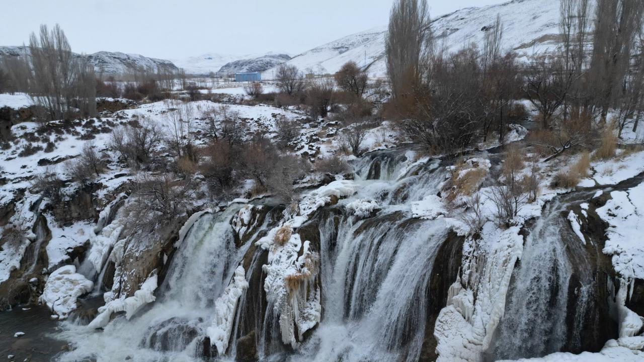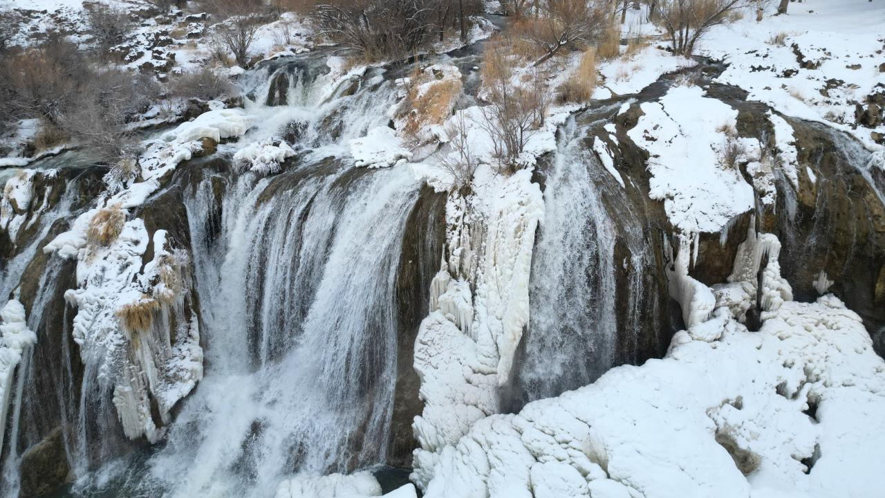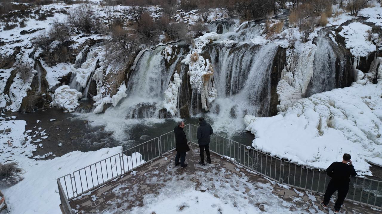 Muradiye Şelalesi kısmen dondu