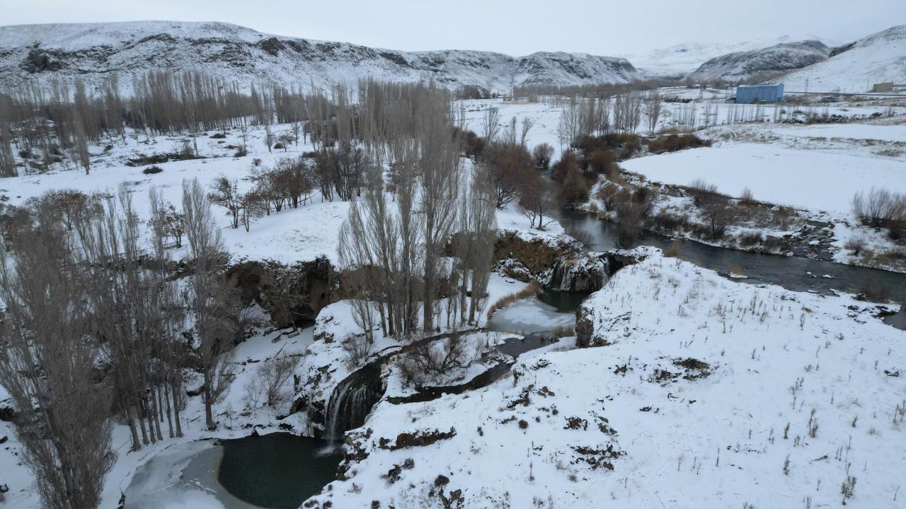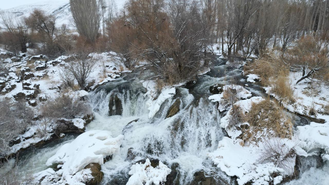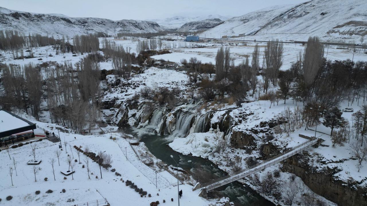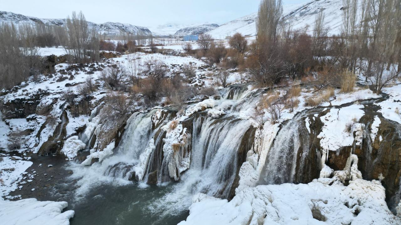 Muradiye Şelalesi kısmen dondu