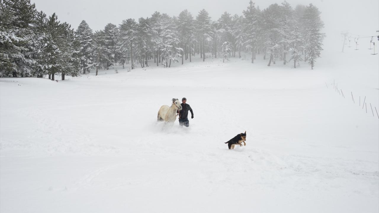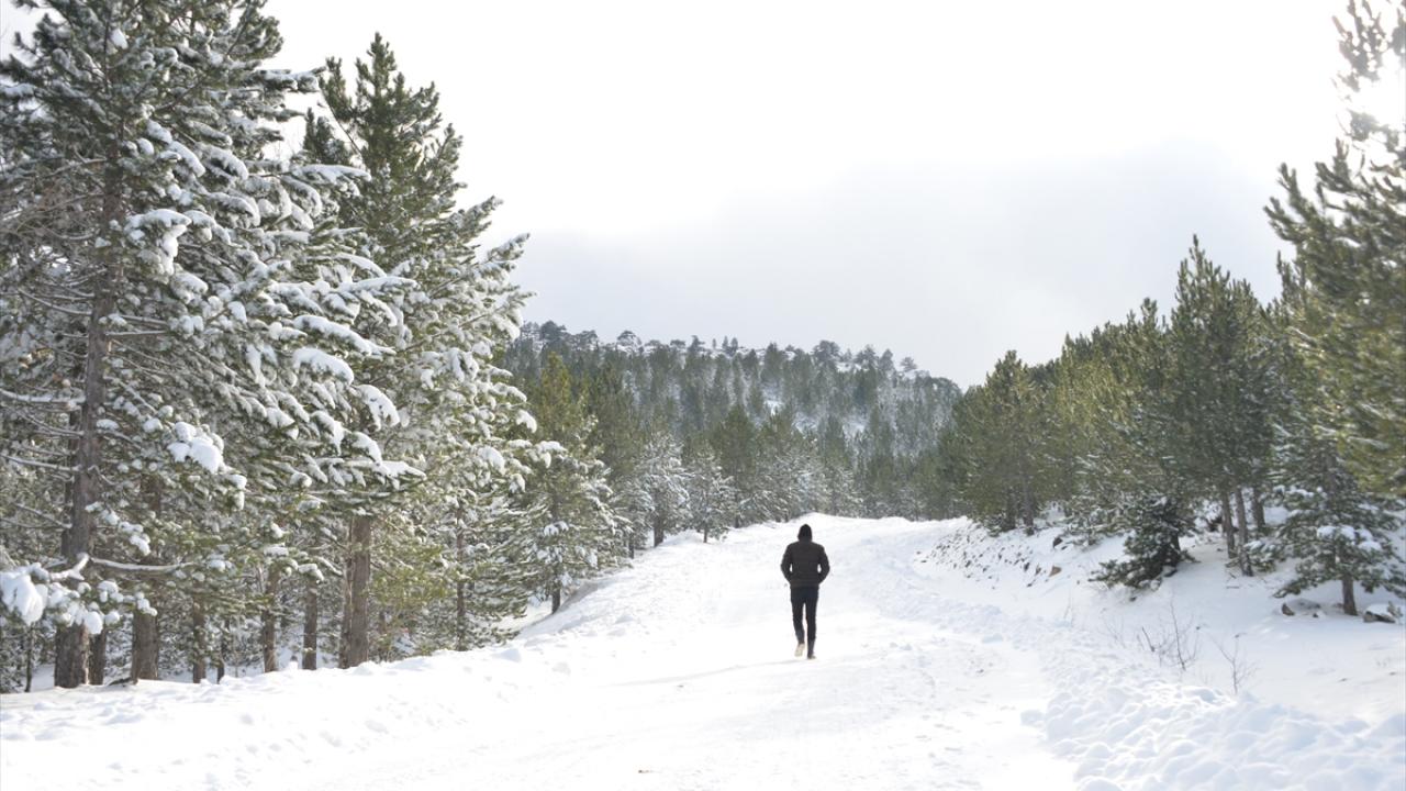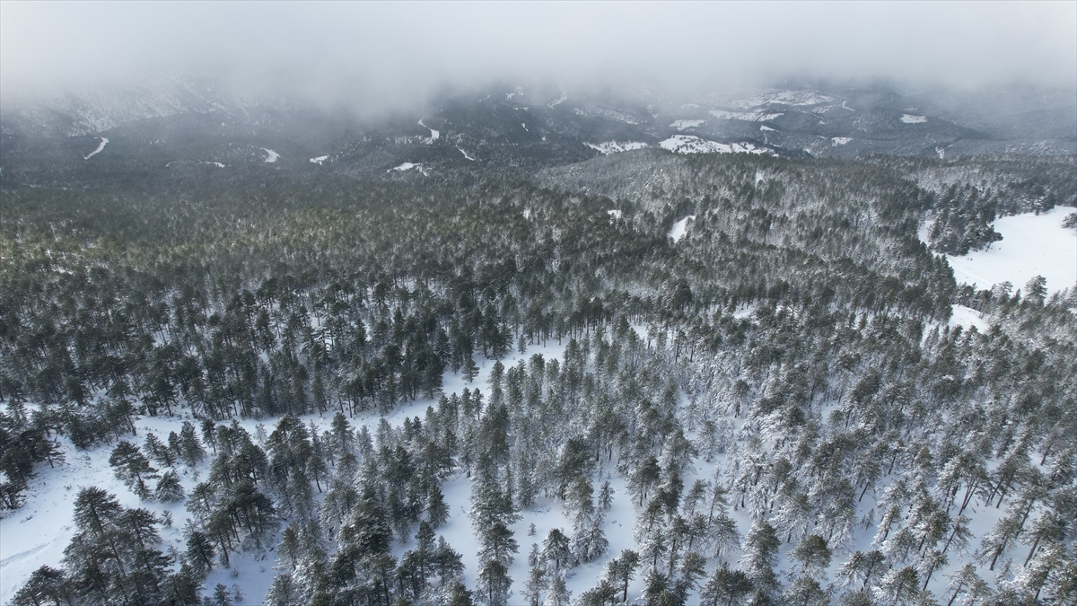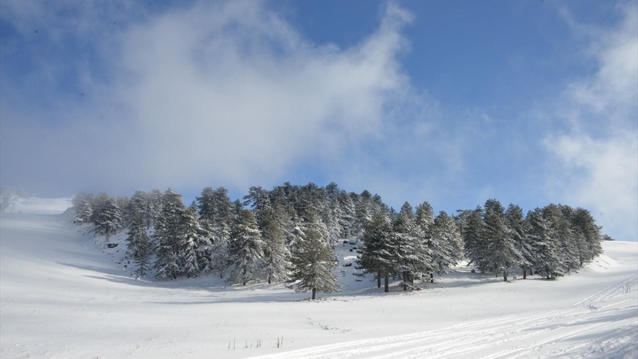 Kütahya'daki Murat Dağı, kar yağışının ardından ayrı bir güzelliğe kavuştu.