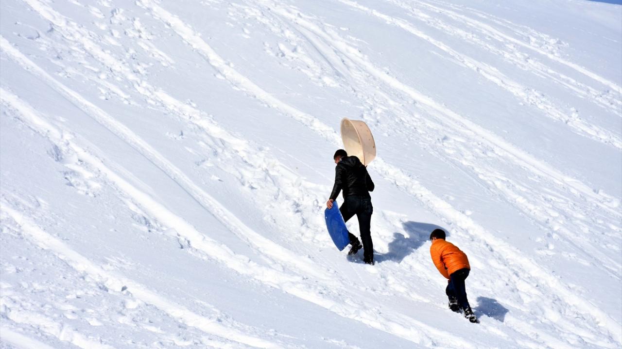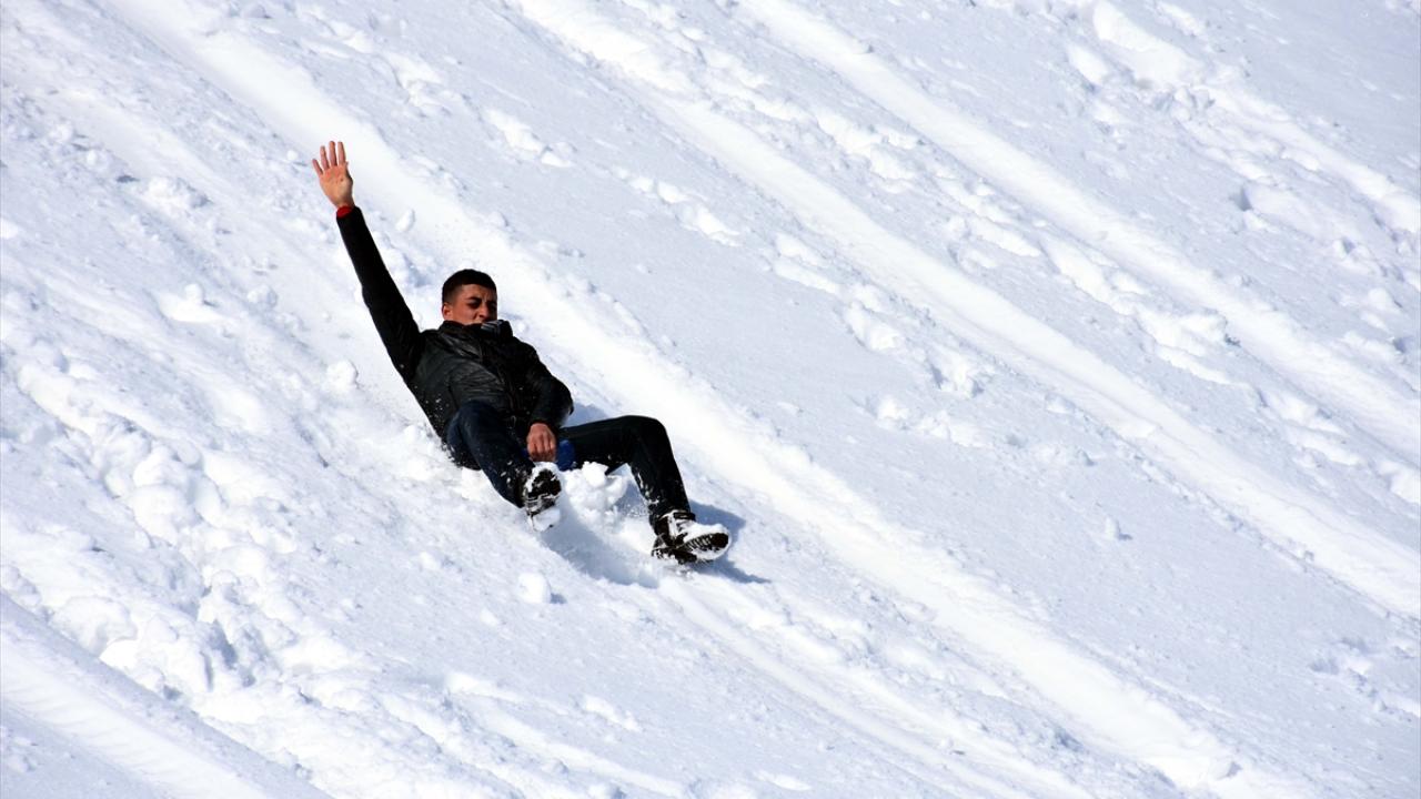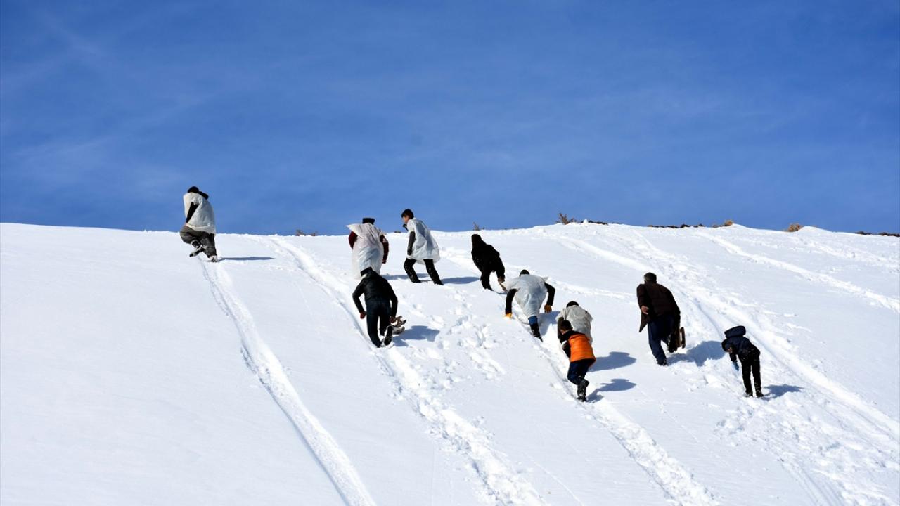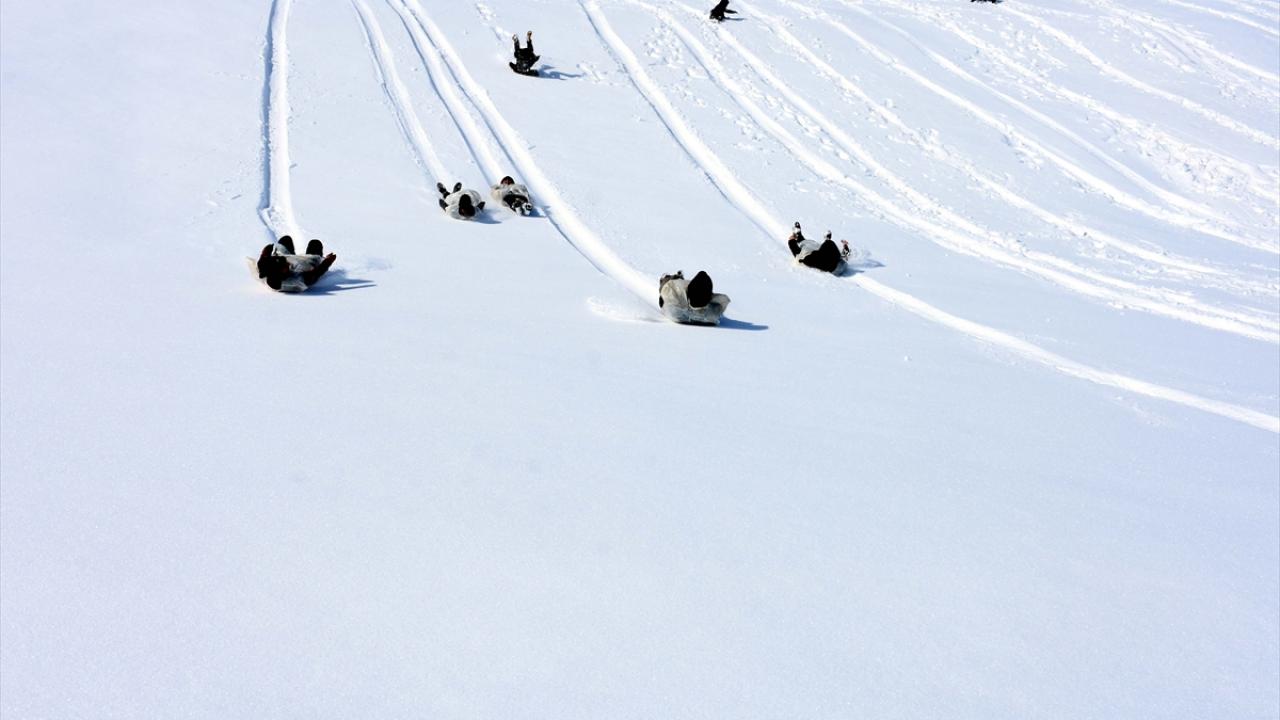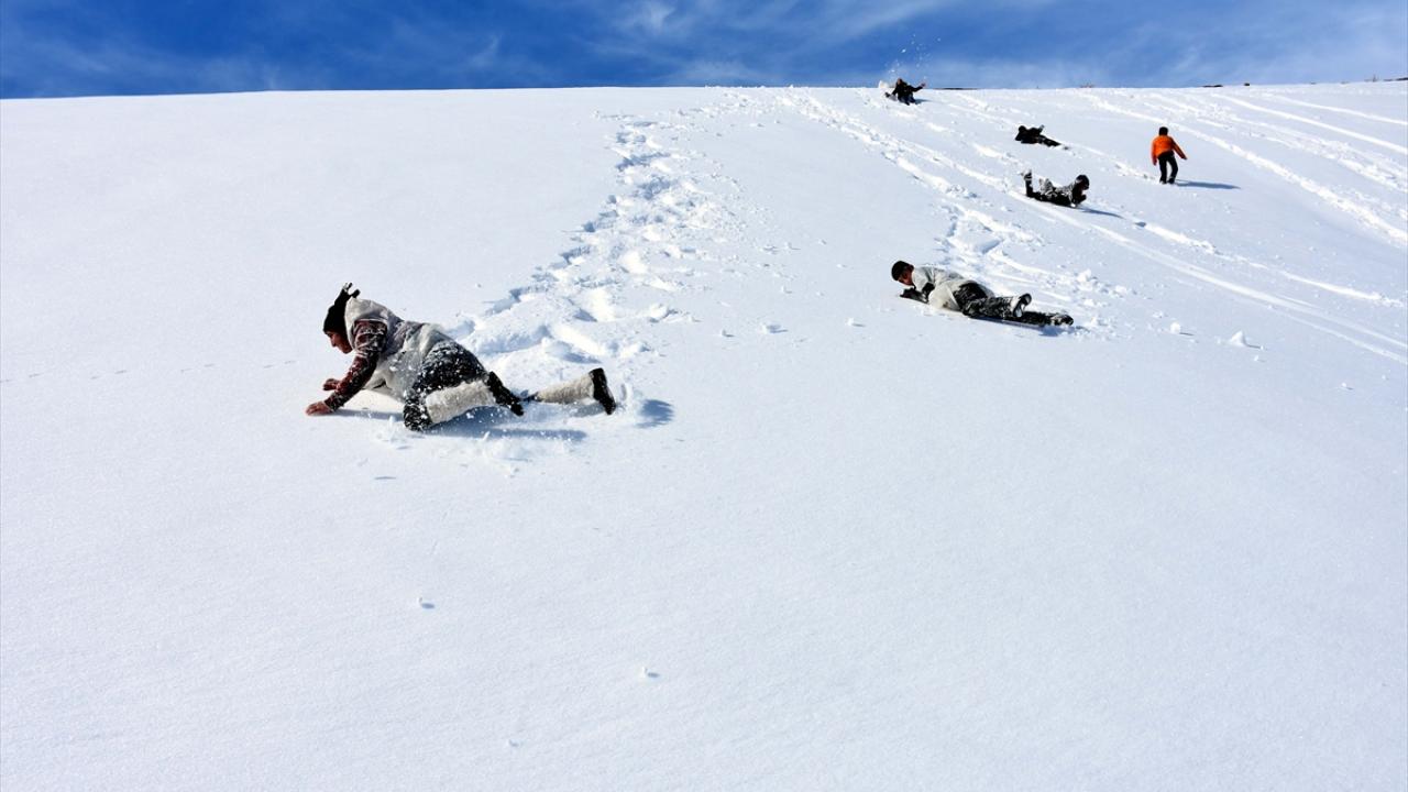 Muşlu çocukların kar eğlencesi sınır tanımıyor