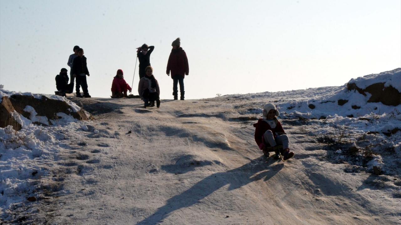 Kızakla kayan çocuklardan Hiranur Aral, karın yağmasına çok sevindiklerini belirterek, "Mahallemizin içindeki boş bir alanı pist haline getirdik. Kızaklarımızla kayarak eğleniyoruz. Güzel zaman geçiriyoruz." dedi.