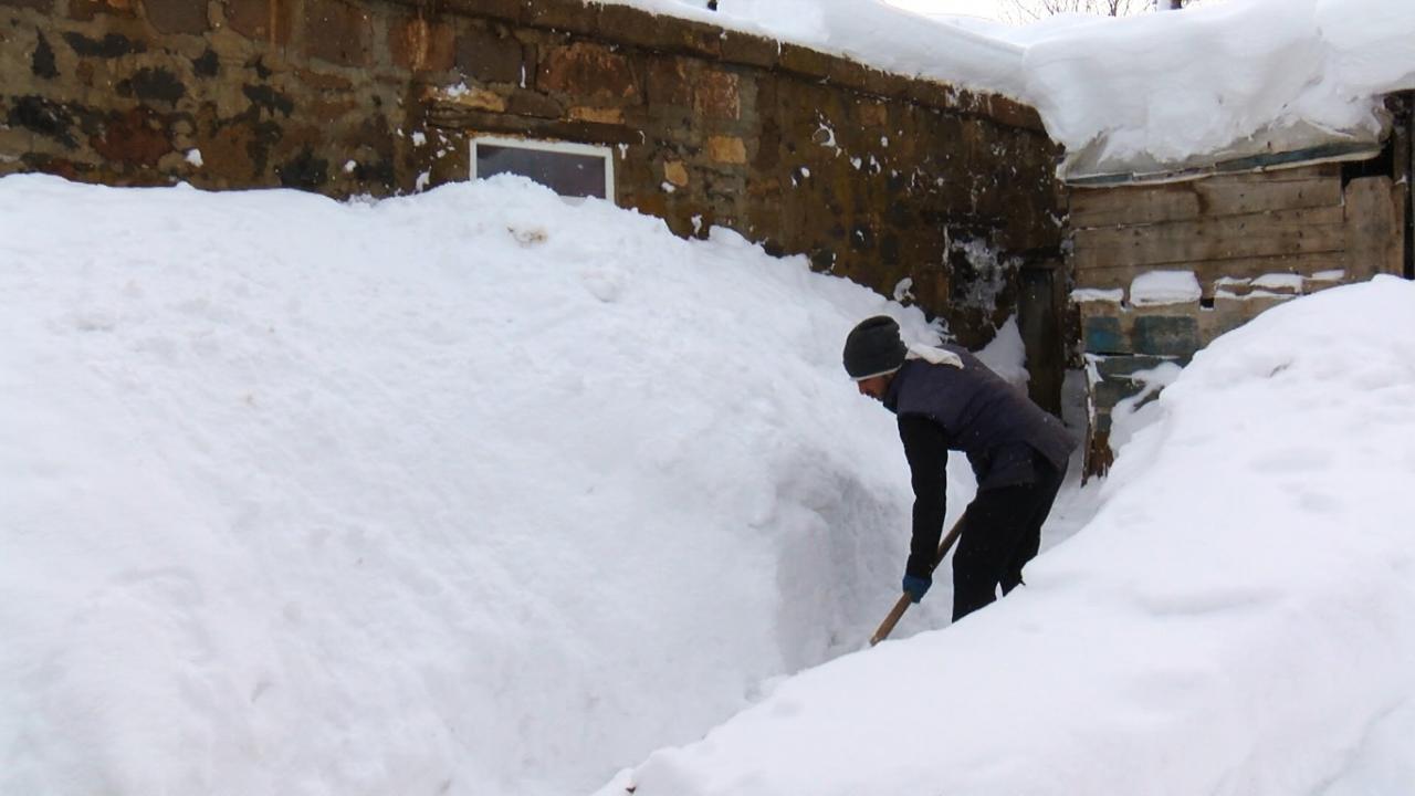 İş makinelerinin giremediği sokaklarda kapı ve pencereler kardan kapanma noktasına gelirken, küreklerle yol açan köylüler kardan tüneller oluşturdu.