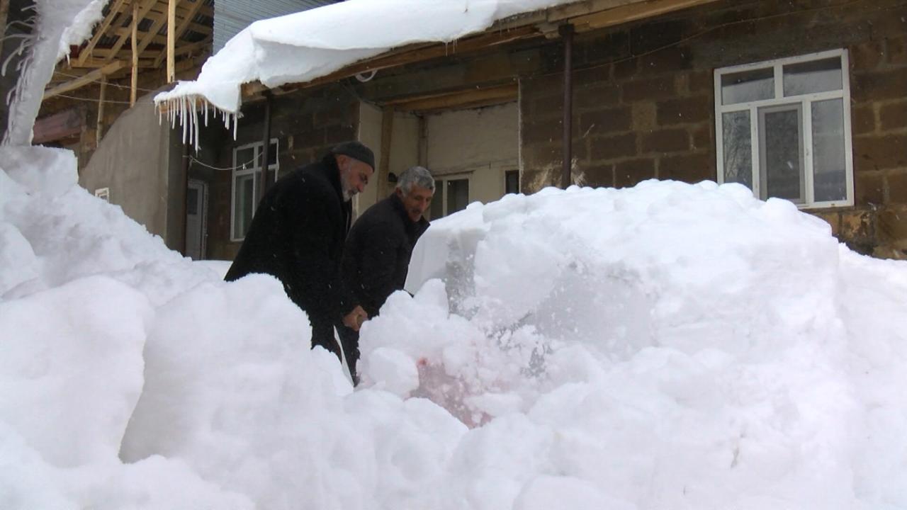 Köyde kar yağışının 1 haftadır etkili olduğunu söyleyen Eyyüp Omur ise “Bütün evler karın altında kaybolmuş durumda. Köyde 2 metreyi bulan kar var. İş makineleri köyün yolunu açtı. Köy içindeki dar sokaklara iş makinaları giremediği için bizler küreklerle açıyoruz. Böylelikle komşularımıza gidiş gelişlerimizi sağlıyoruz. Evlerimiz kapı girişini kürekle açmışız ve tünel gibi olmuş. Köyümüz karın altında kaybolmuş" diye konuştu.