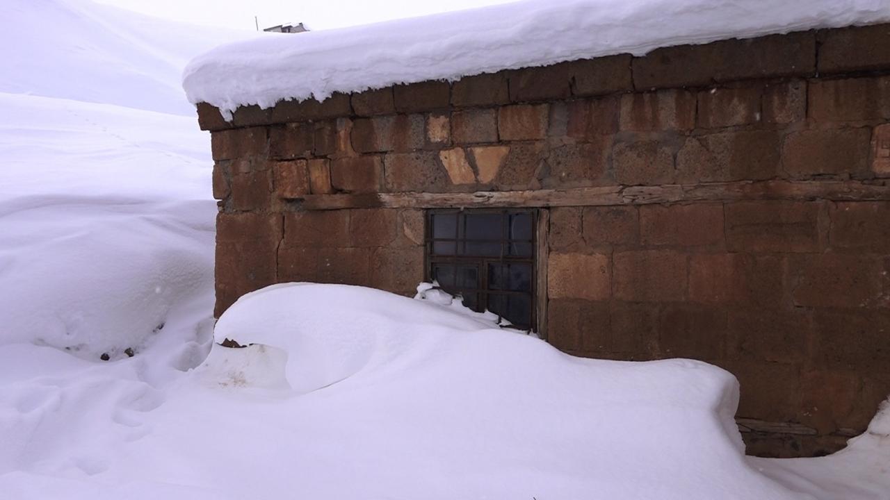 Yüksek rakımda olduğu için kar yağışı ve tipinin eksik olmadığı Yukarıyongalı köyünde, tek katlı evler ile ahır ve odunluklar, görünmeyecek duruma geldi.