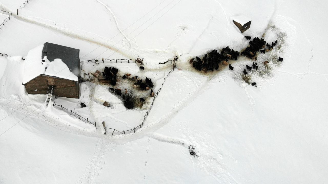 Geçimlerini besicilikle sağlayan vatandaşlar ise günde iki defa hayvanlarını kar üzerinde güçlükle besliyor.