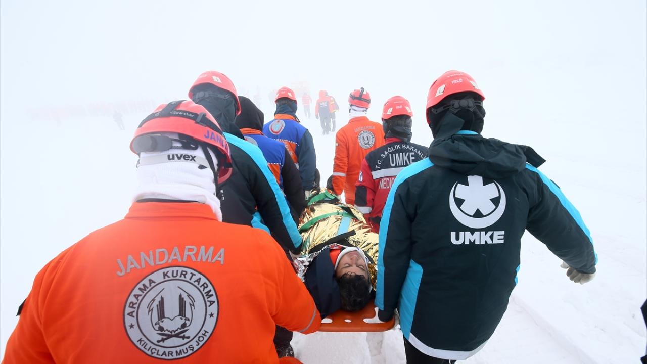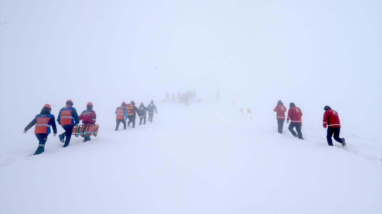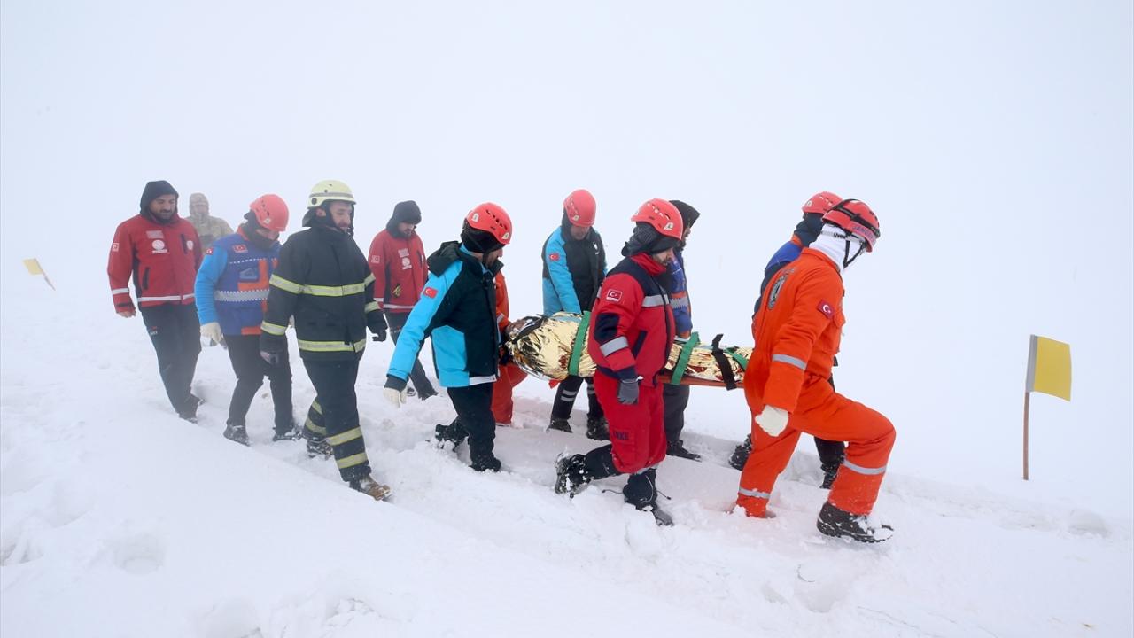 Yoğun sis ve karla kaplı bölgede düzenlenen tatbikatta, AFAD, jandarma, polis, UMKE, 112 Acil Sağlık, Kızılay, itfaiye, MEB AKUB, HAK ve İHH arama kurtarma ekipleri yer aldı.
