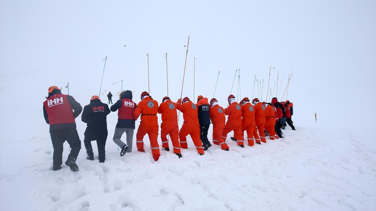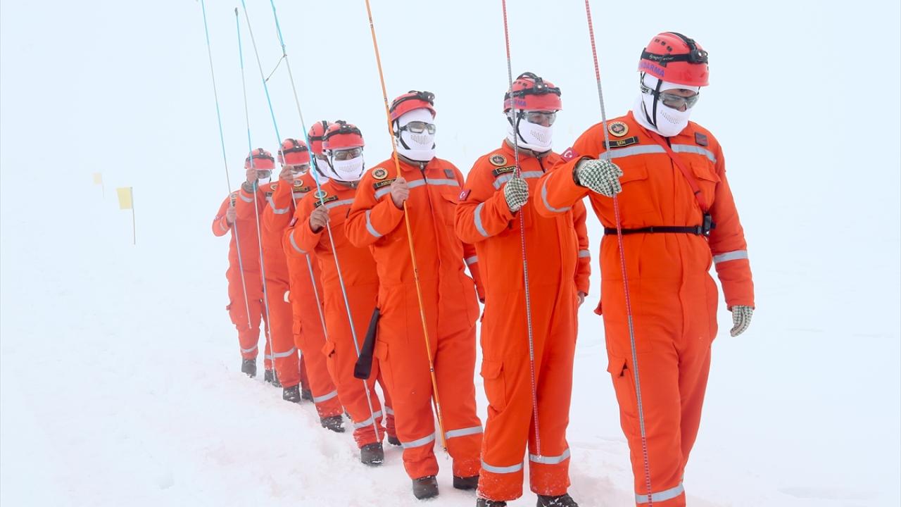 Tatbikatta ekipler, senaryo gereği Kozma Dağı`nda çığ düşmesi sonucu kar altında kalan 5 dağcının yerini sondalama yöntemiyle belirledi.